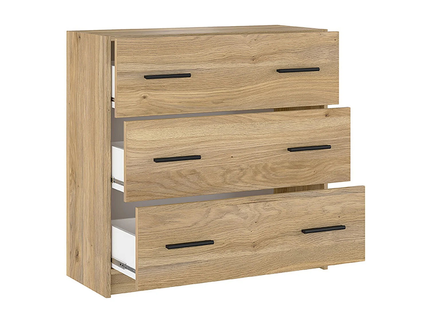 Commode, meuble de rangement avec 3 tiroirs coloris chêne Mauvella - Longueur 80 x profondeur 34,40 x hauteur 81 cm