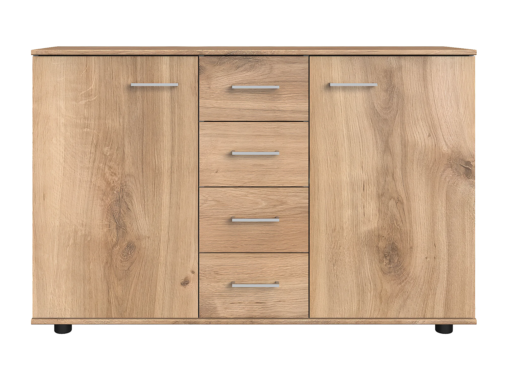 Commode meuble de rangement coloris imitation chêne poutre/chrome brillant