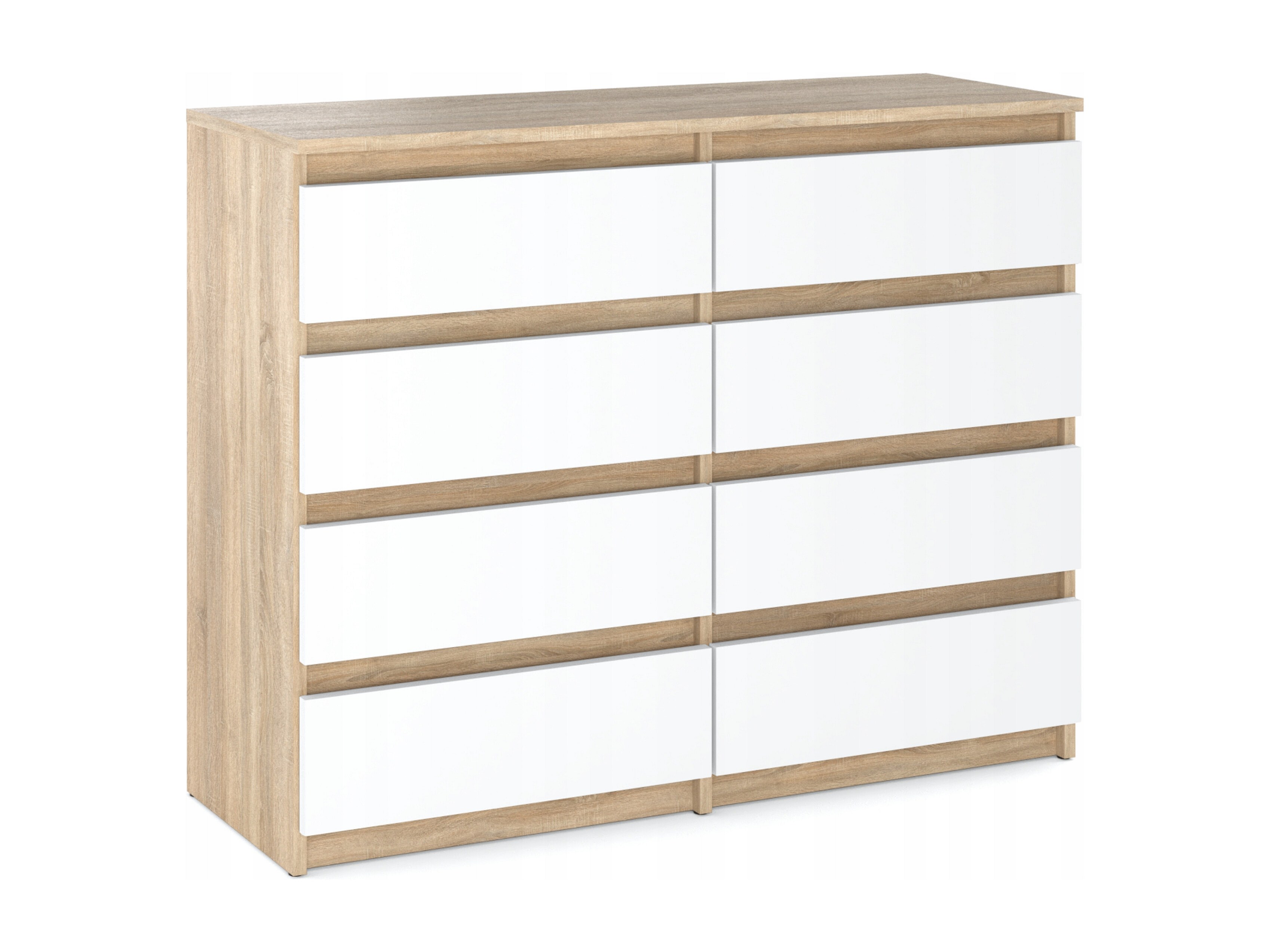 Commode moderne 120 cm Chêne Sonoma Blanc avec 8 tiroirs – Grand meuble de rangement pour salon