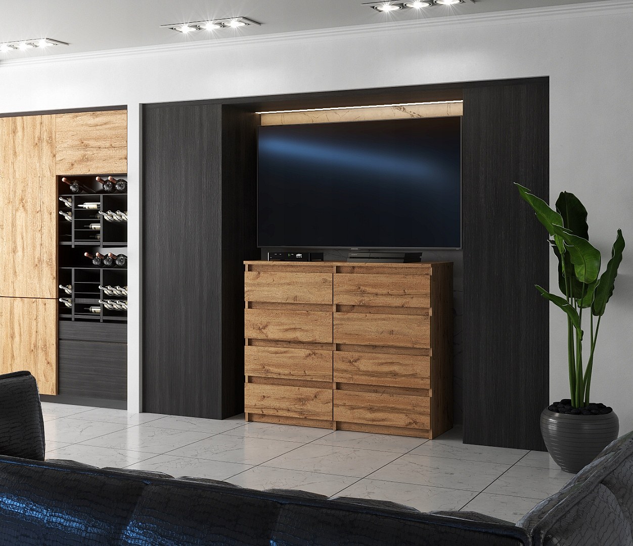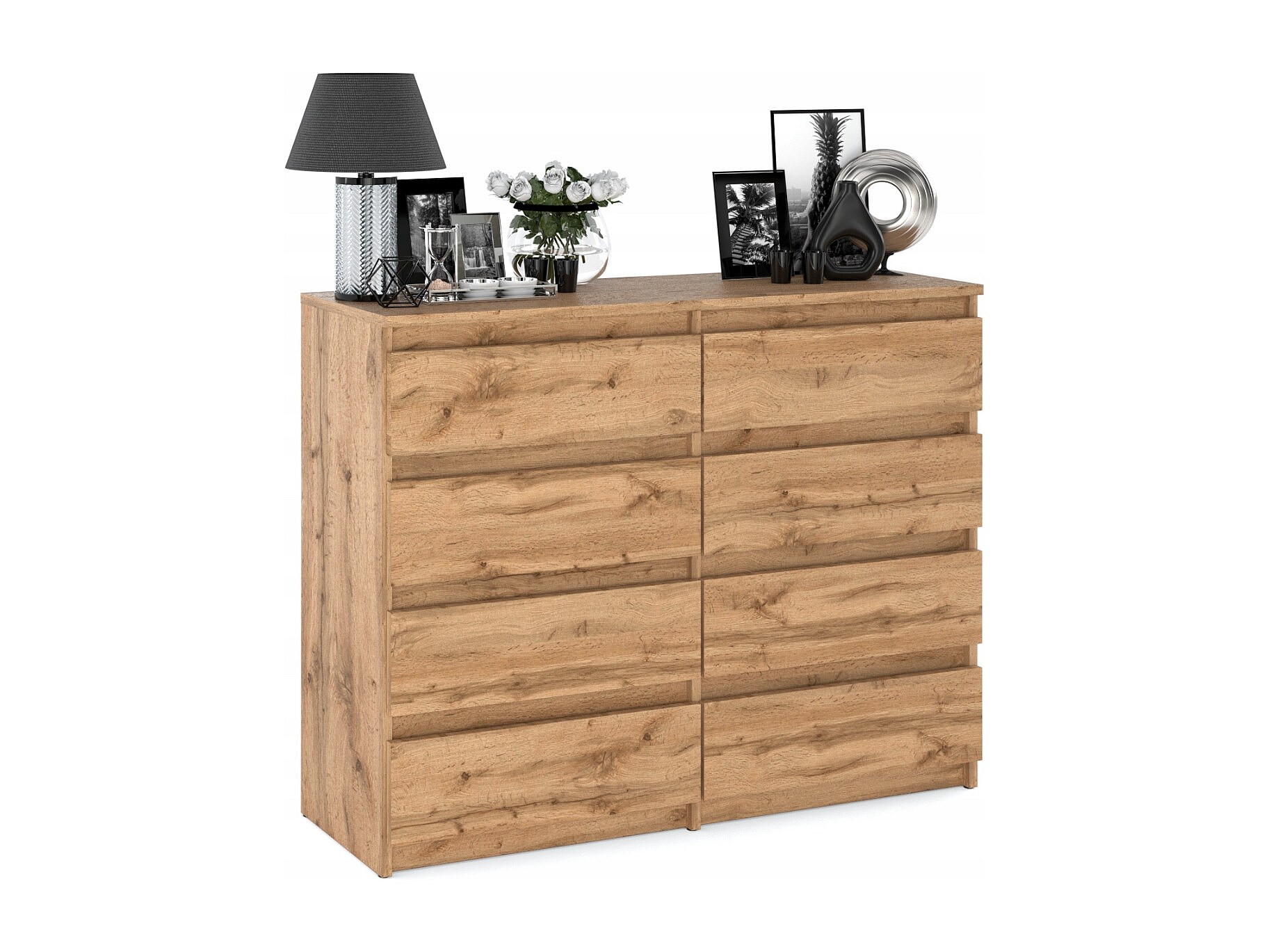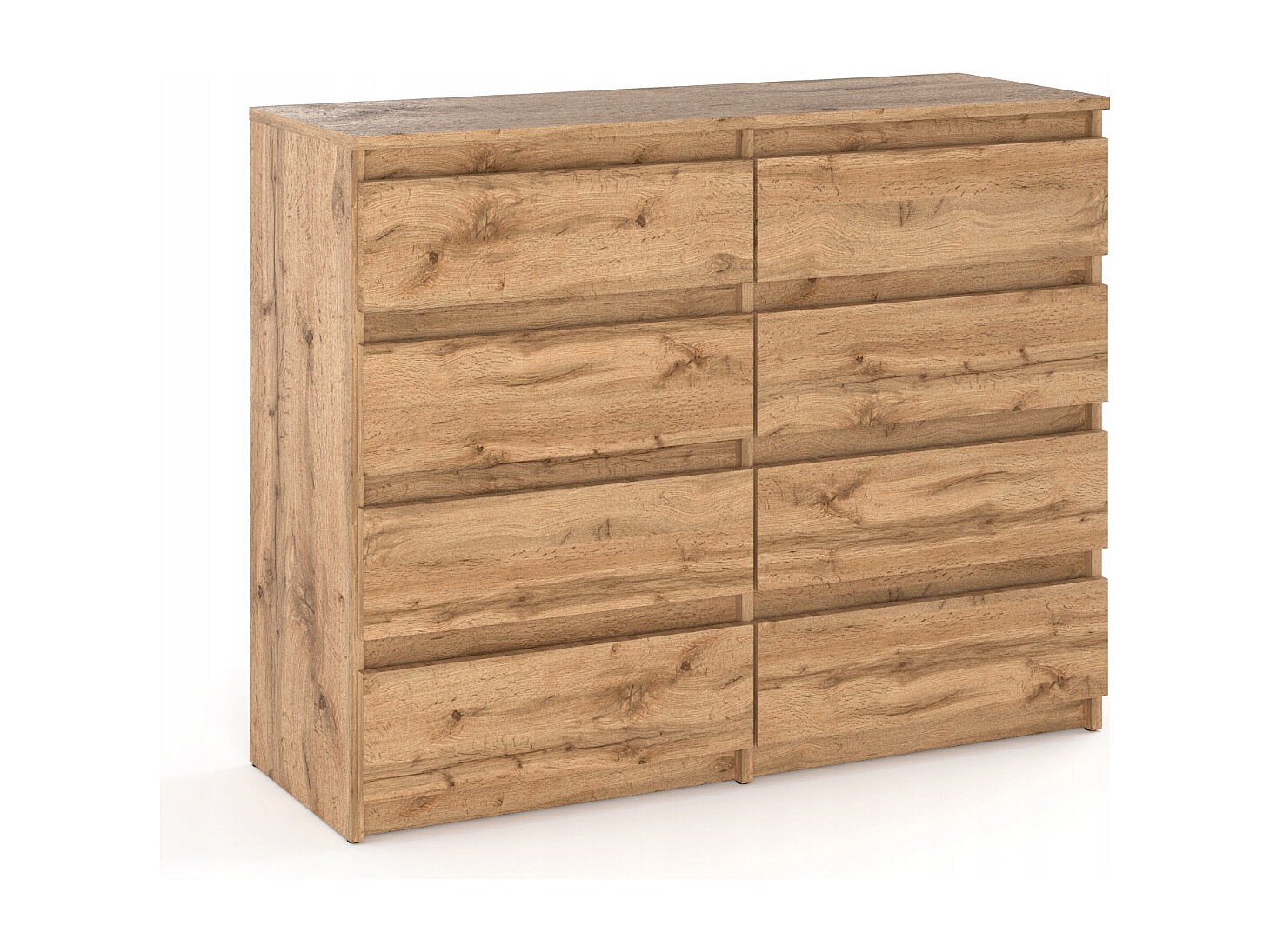 Commode moderne 120 cm Chêne Wotan avec 8 tiroirs – Grand meuble de rangement pour salon