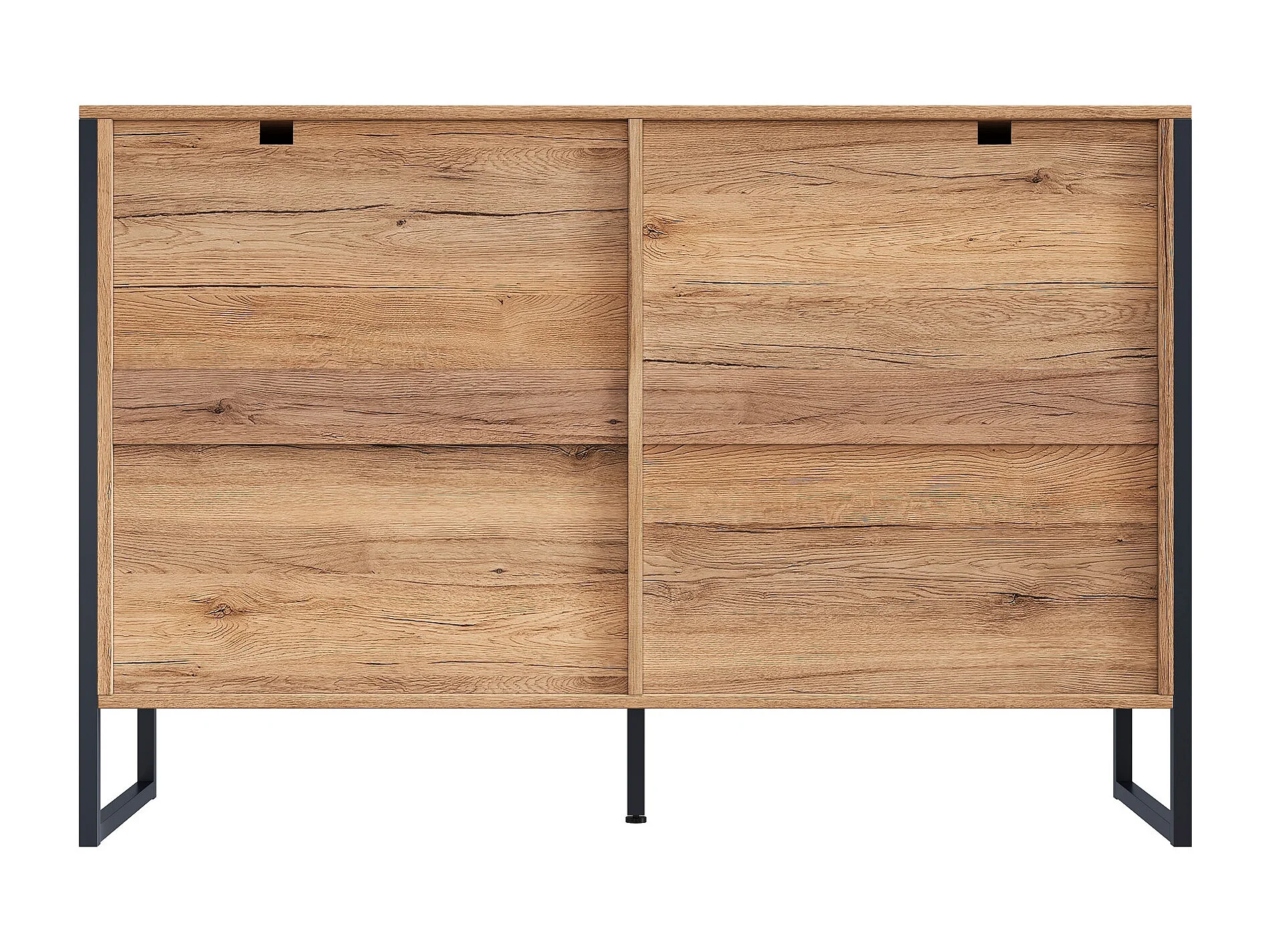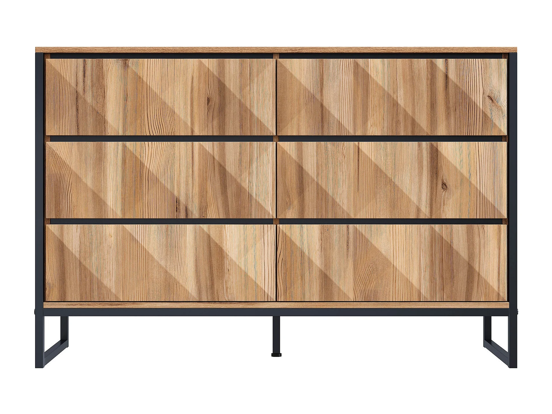 Commode moderne à 6 tiroirs, 120x40x80 cm, pieds en métal, en panneau de particules + MDF, naturel + noir