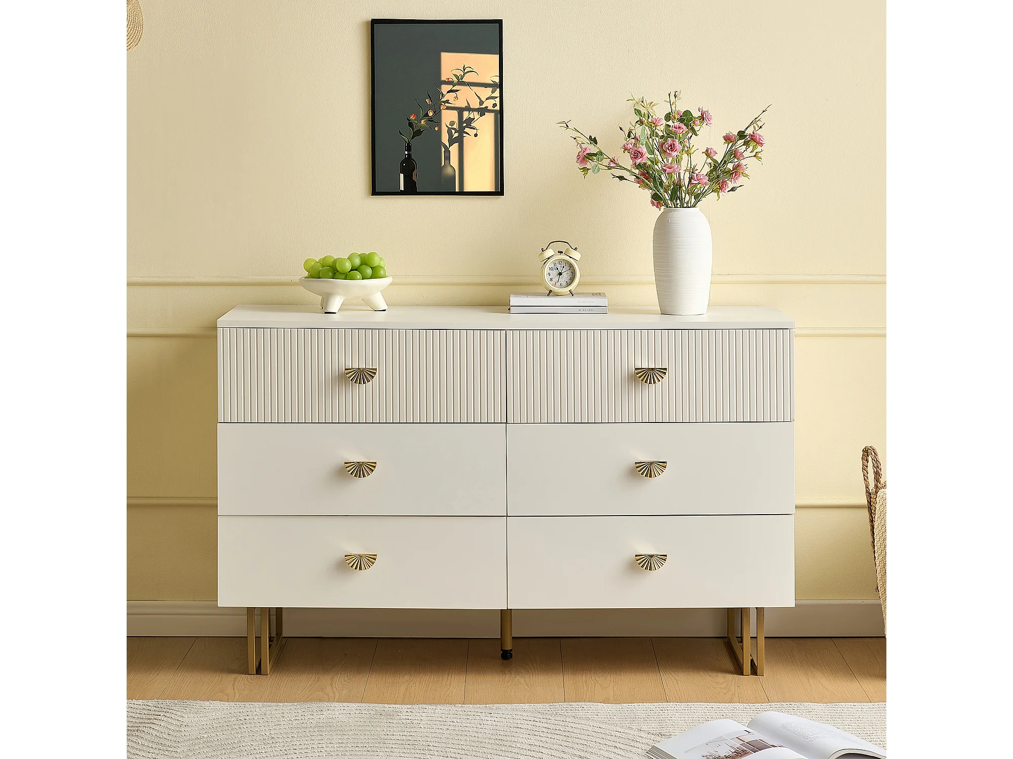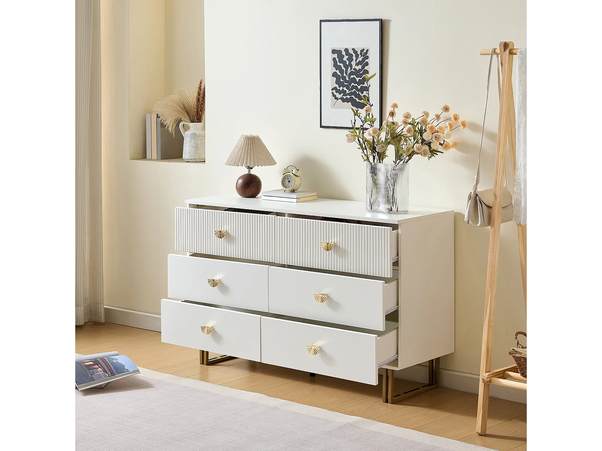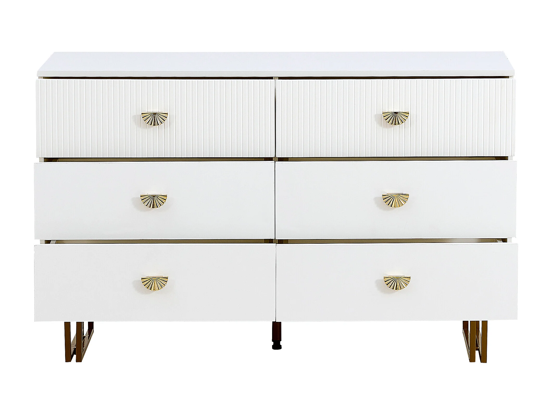 Commode moderne à 6 tiroirs 80x36x90 cm, pieds en acier, idéal pour les salons, rangement, en MDF blanc