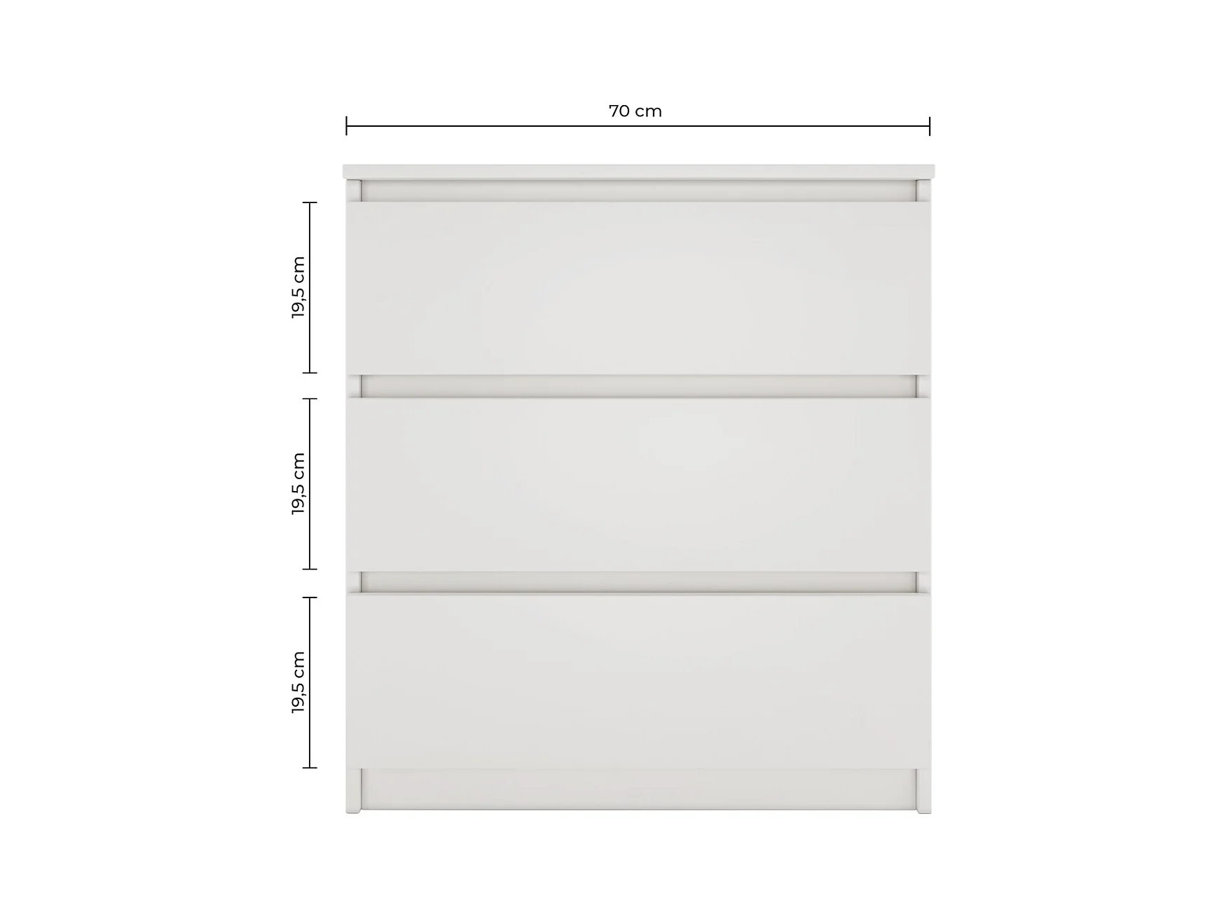 ASTER T3 | Commode moderne 3 tiroirs salon/chambre/bureau | Dimensions 77x70x40 | Table de chevet | Meuble de rangement contemporain