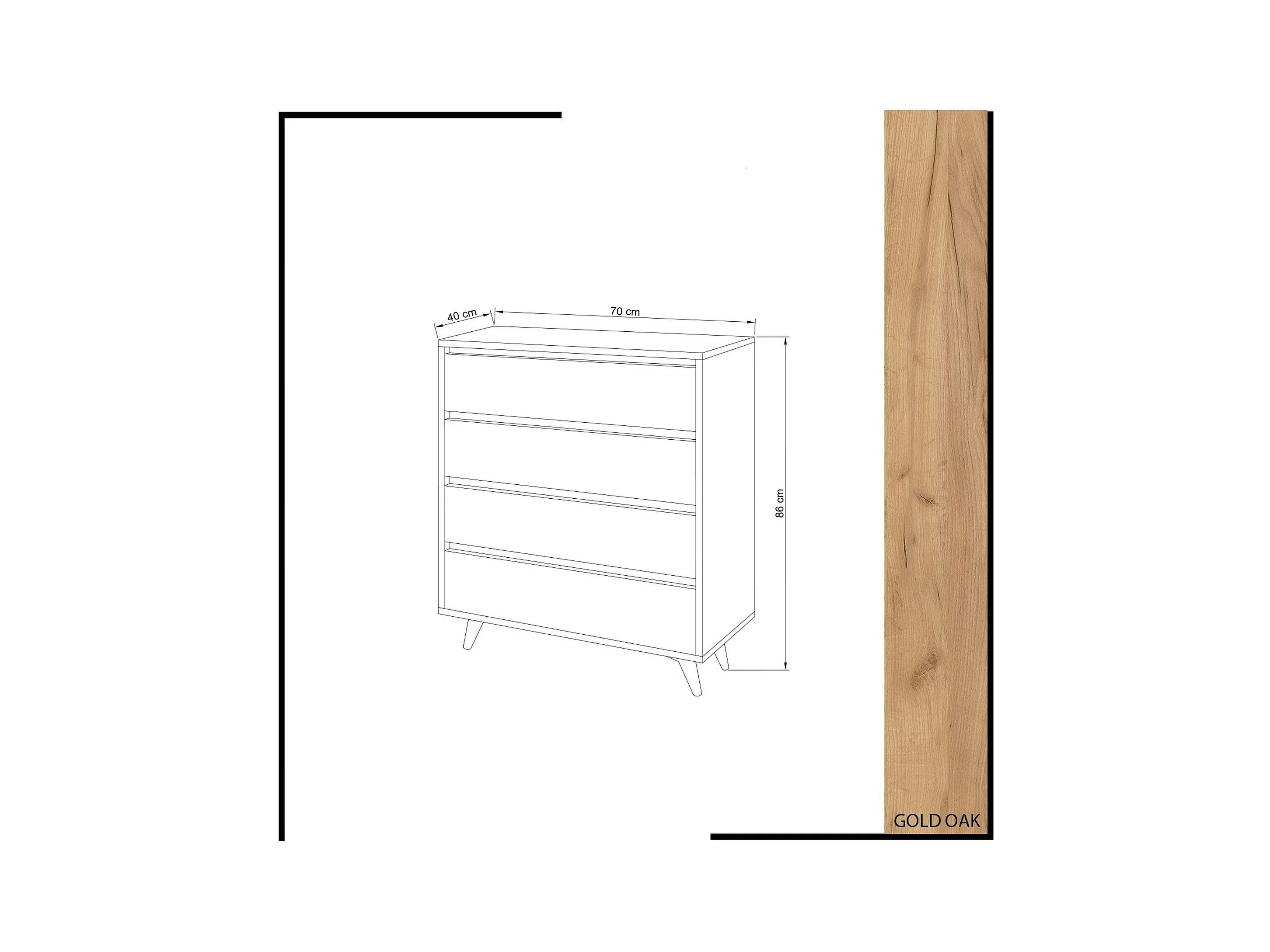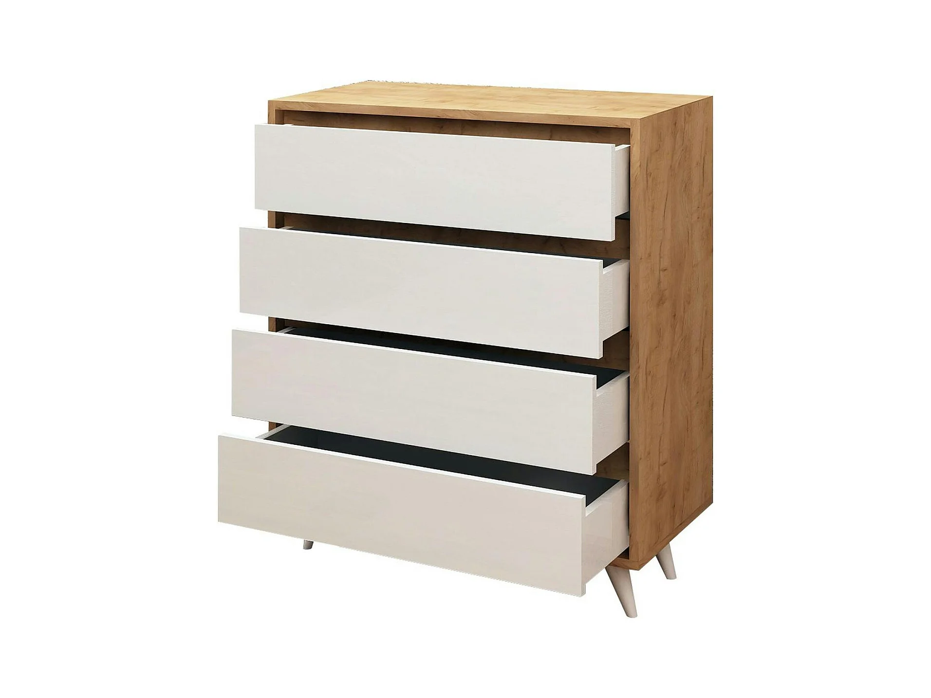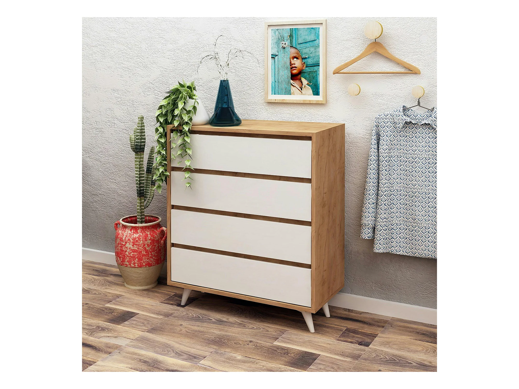 Commode moderne effet chêne 4 tiroirs blancs BYRON