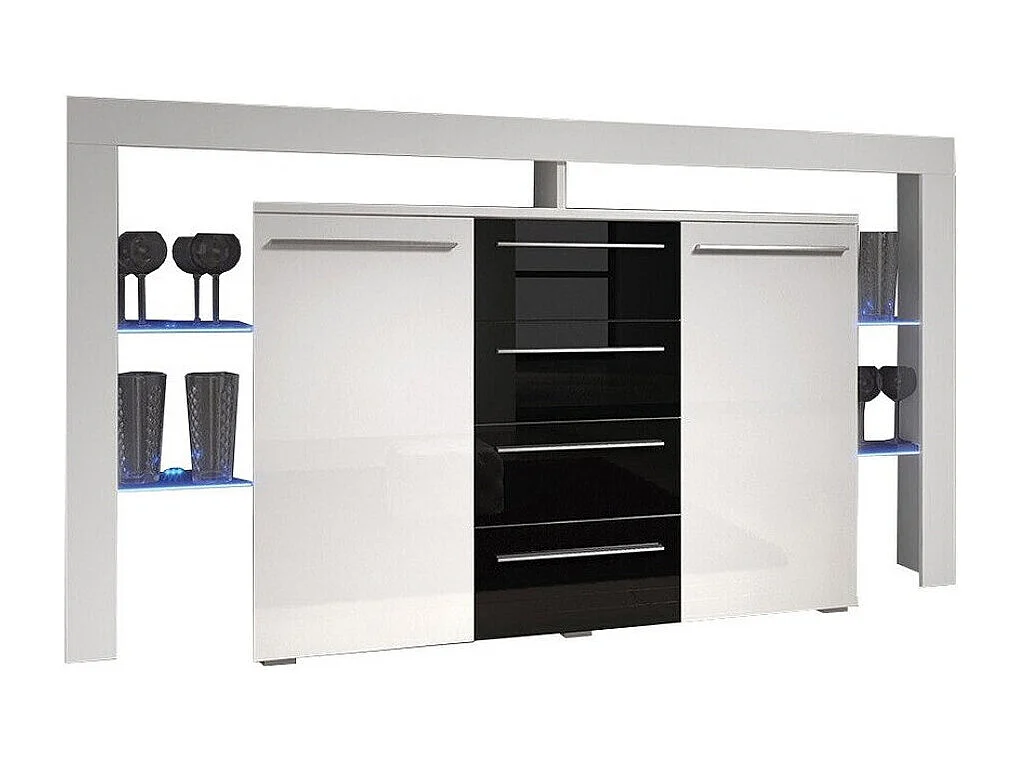 Commode Nashville 106, Noir brillant|Blanc, Tiroirs et portes, Nombre de tiroirs: 4, 94cm