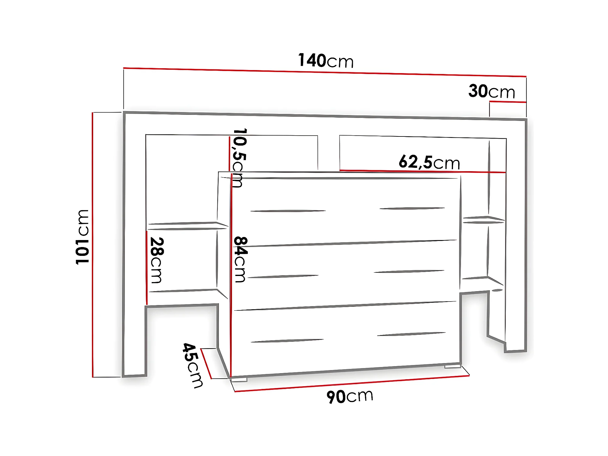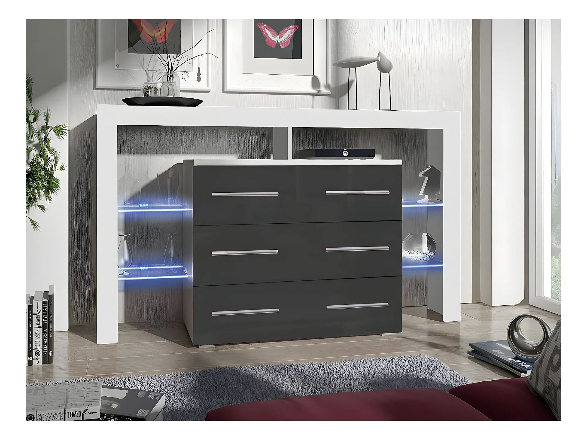 Commode Nashville 108, Gris brillant|Blanc, Avec tiroirs, Nombre de tiroirs: 3, 101x140cm