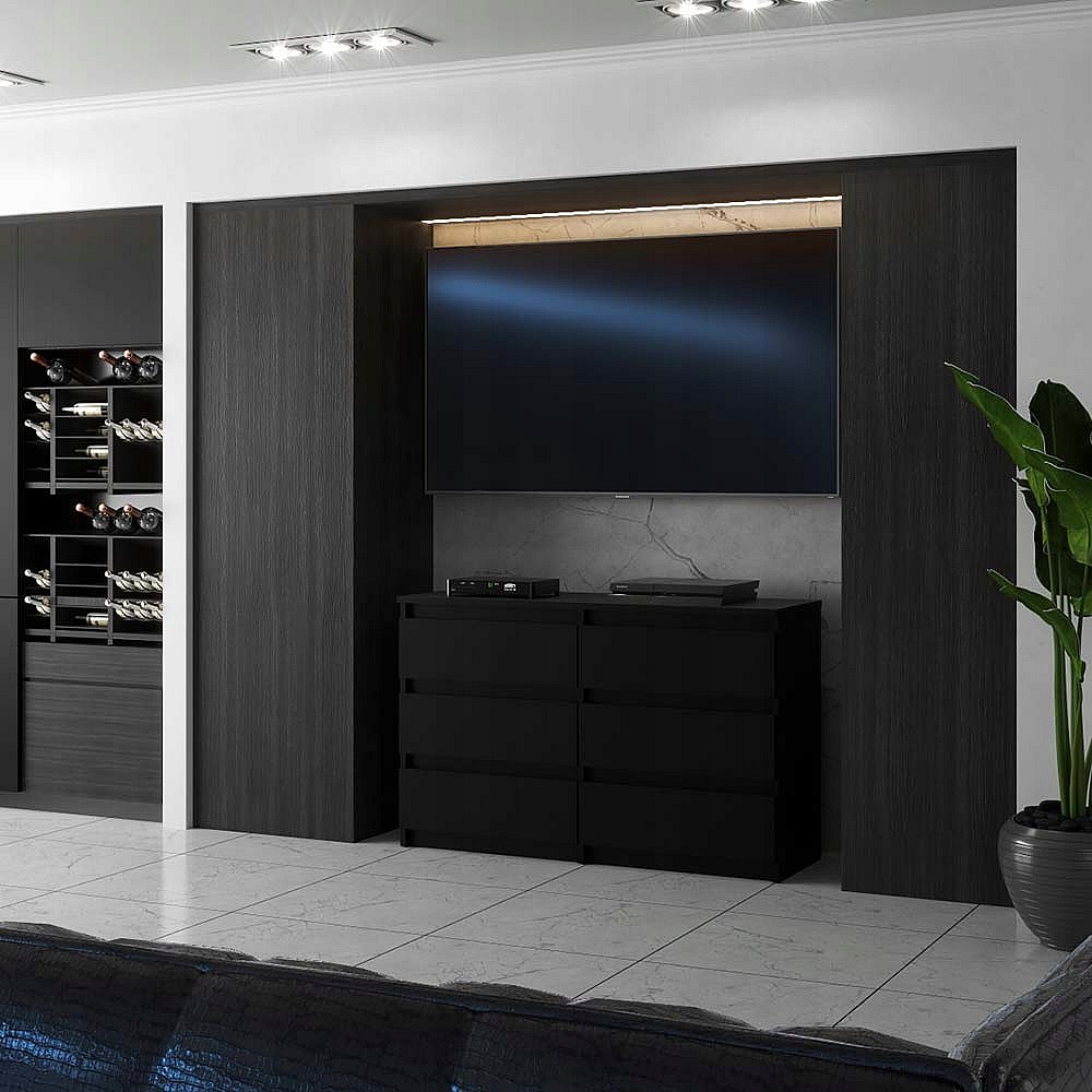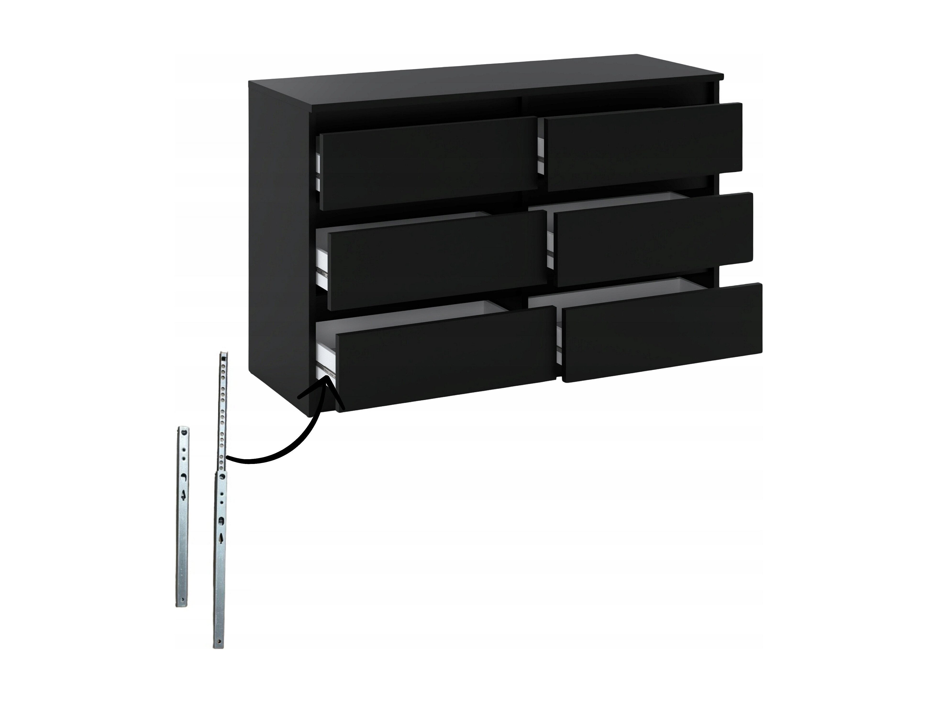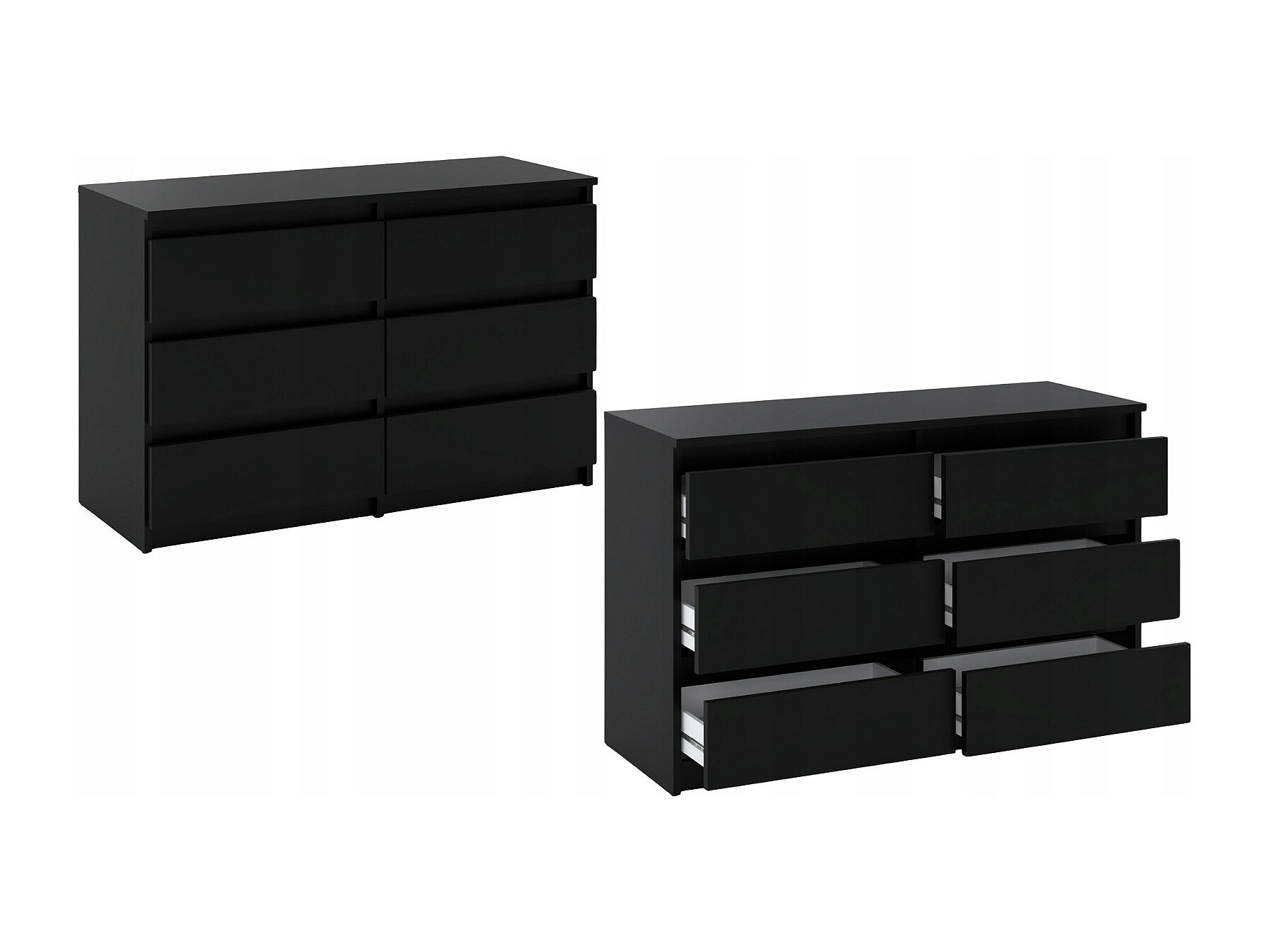 Commode 6 Tiroirs : Noir Mat, 120 x 39 x 79 cm