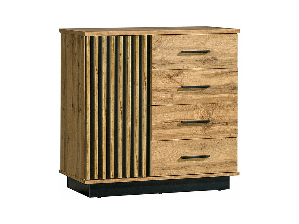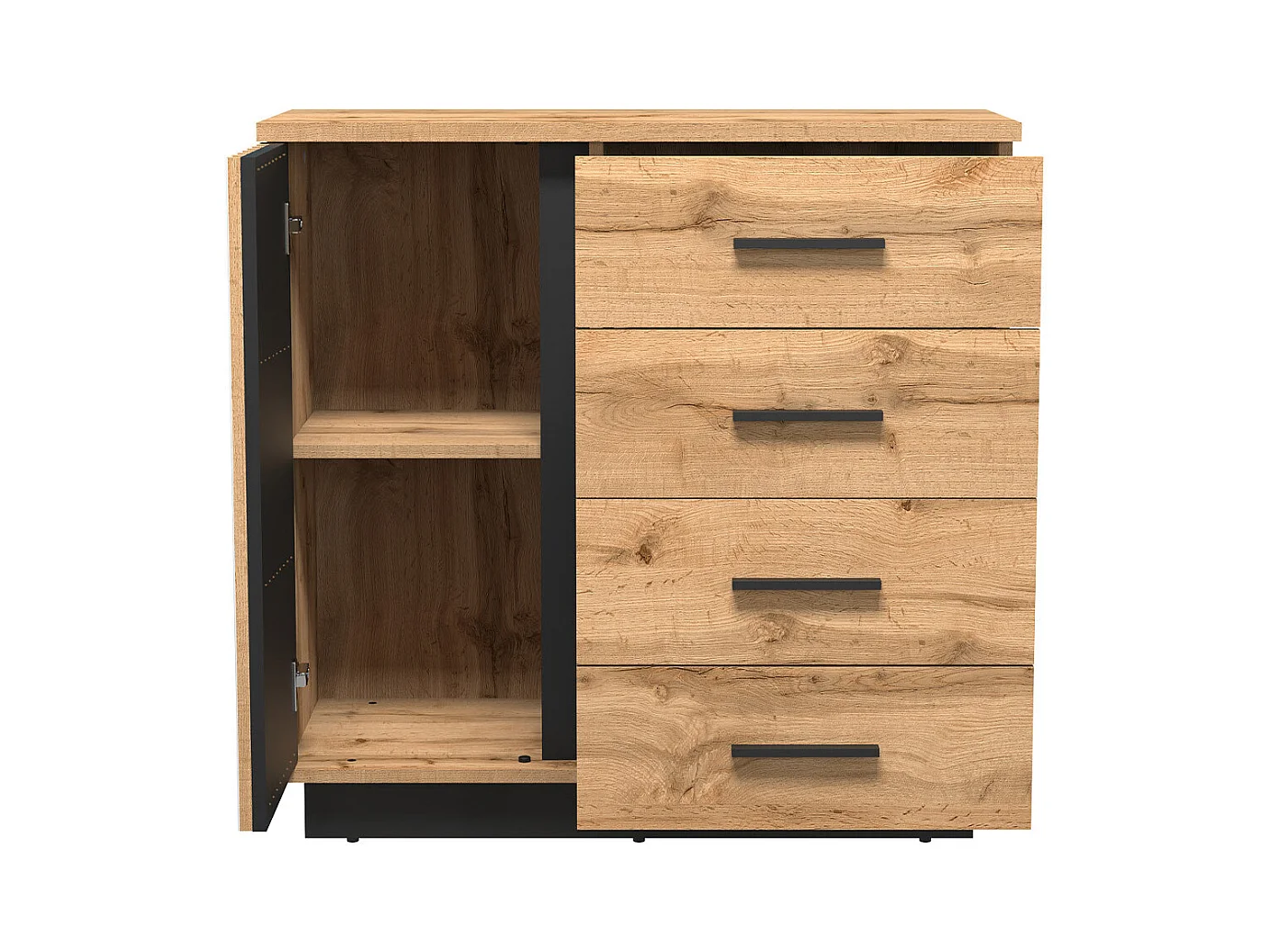 Commode Tenodeu 104, Chêne wotan|Noir, Avec tiroirs et portes, Nombre de tiroirs: 4, 88cm