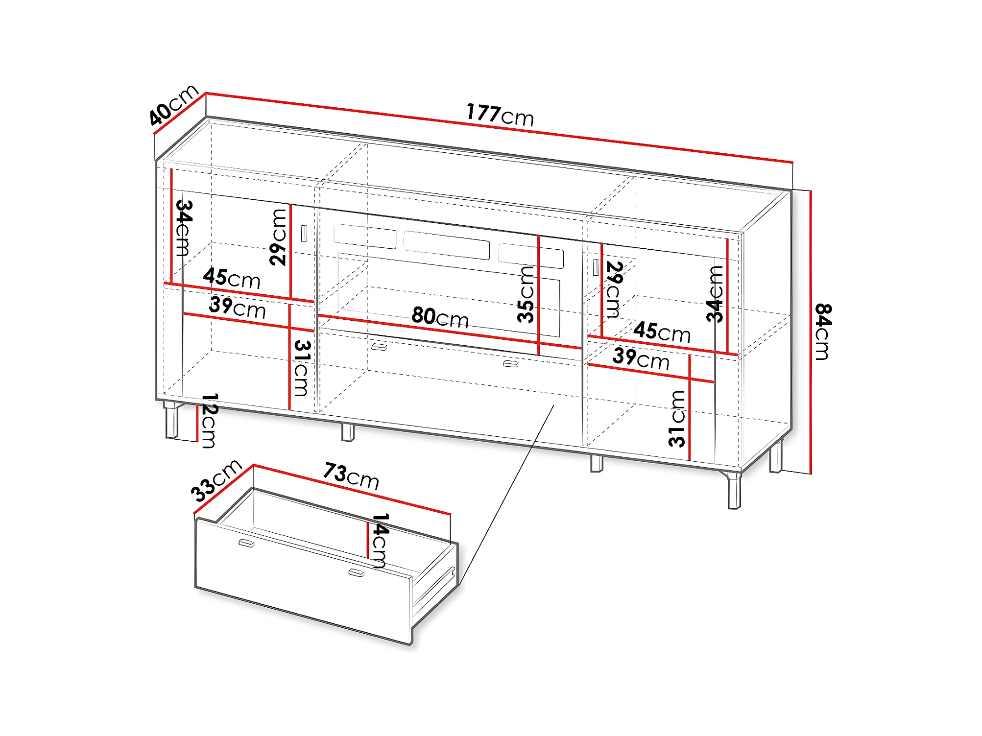 Commode Mormavu 110, Chêne|Cachemire, Avec tiroirs et portes, 84x177x40cm