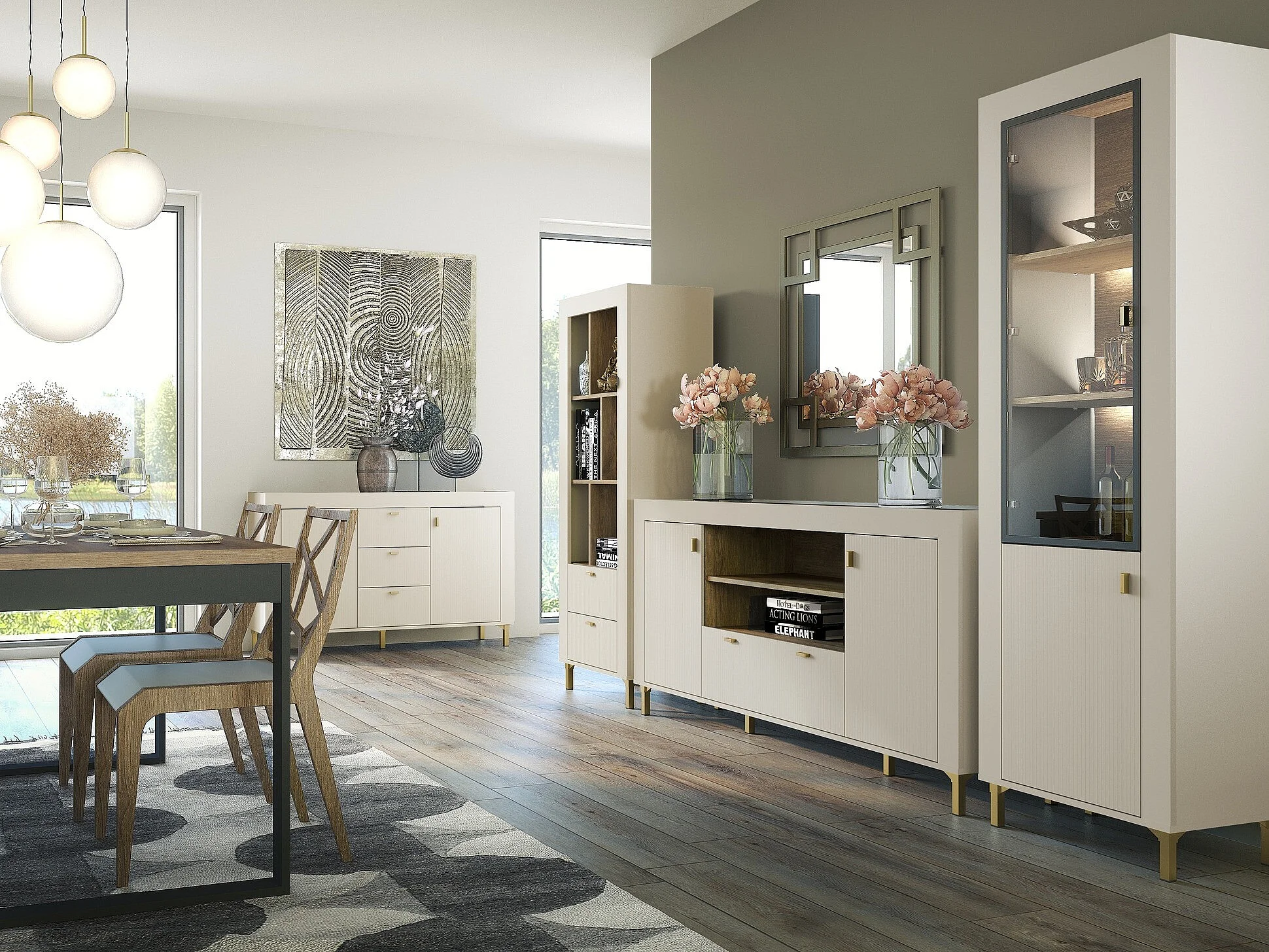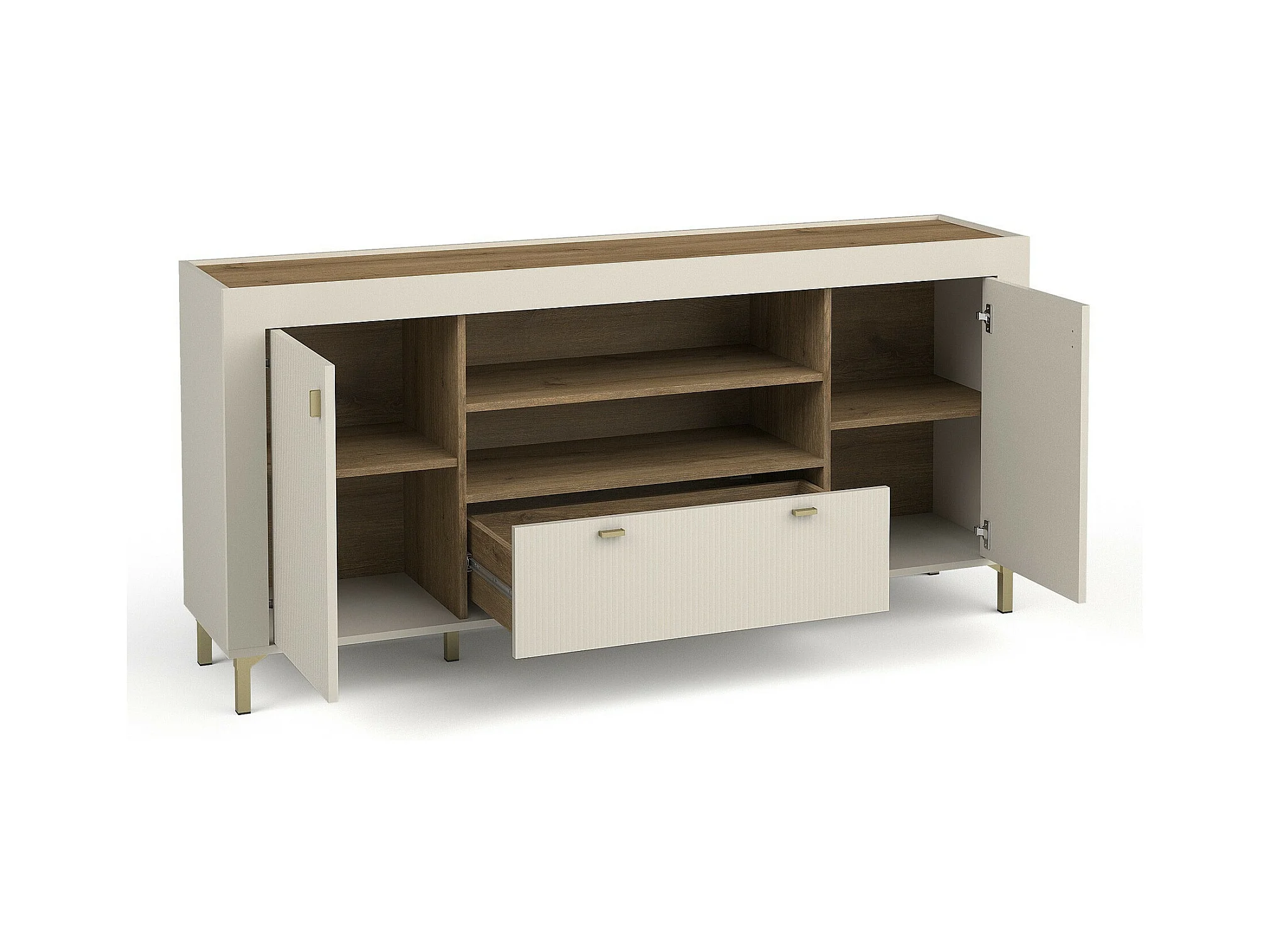 Commode Mormavu 110, Cachemire|Chêne, Avec tiroirs et portes, 84x177x40cm