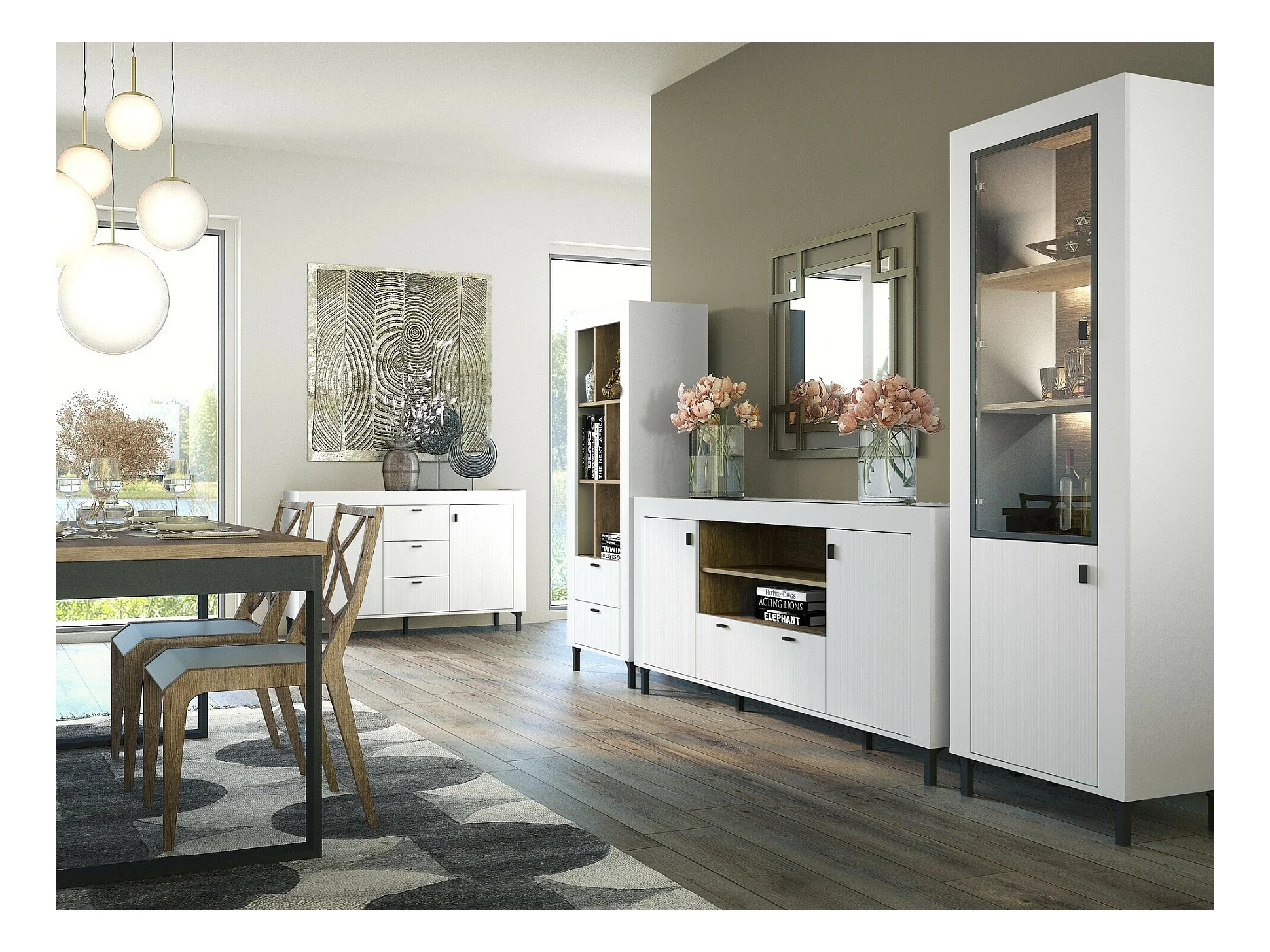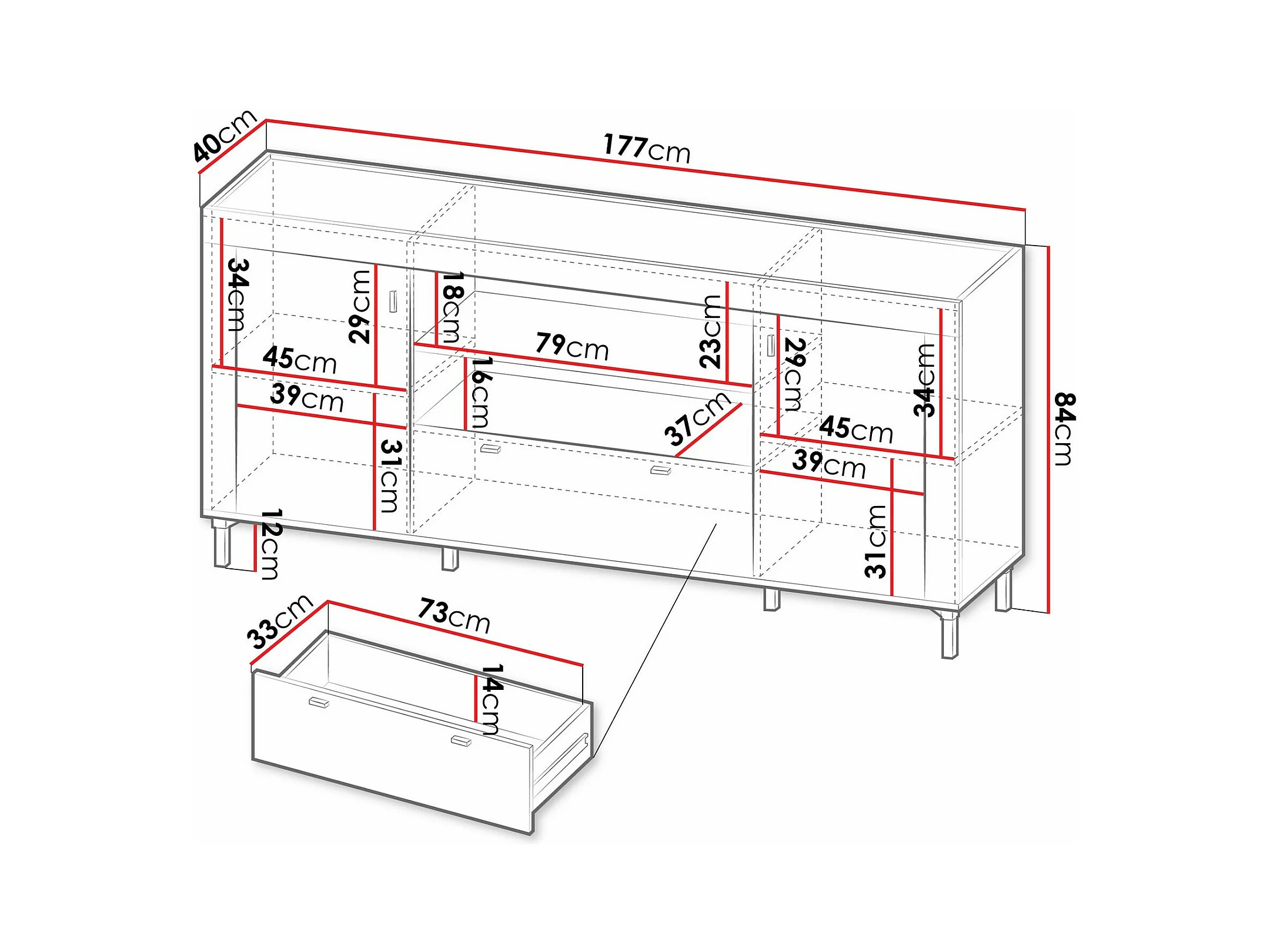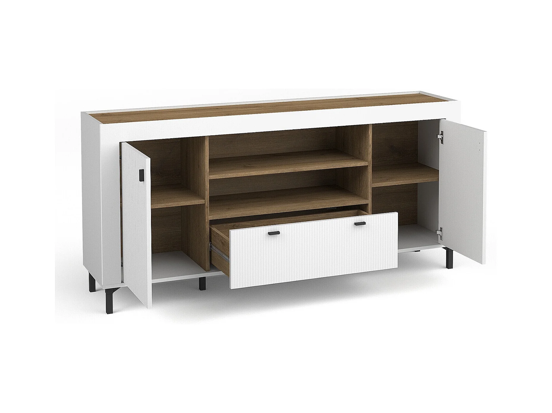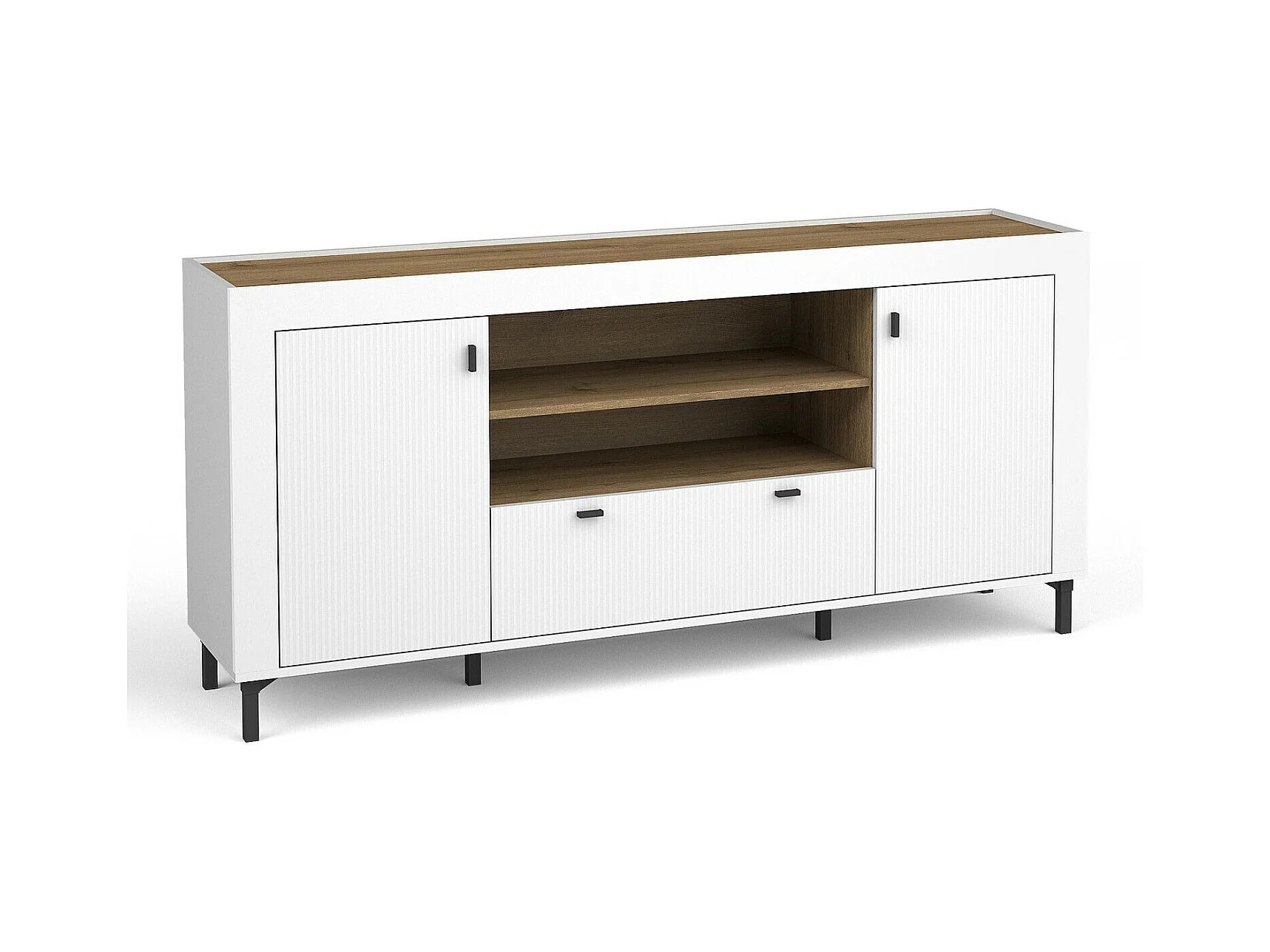 Commode Mormavu 110, Chêne|Mat blanc, Avec tiroirs et portes, 84x177x40cm