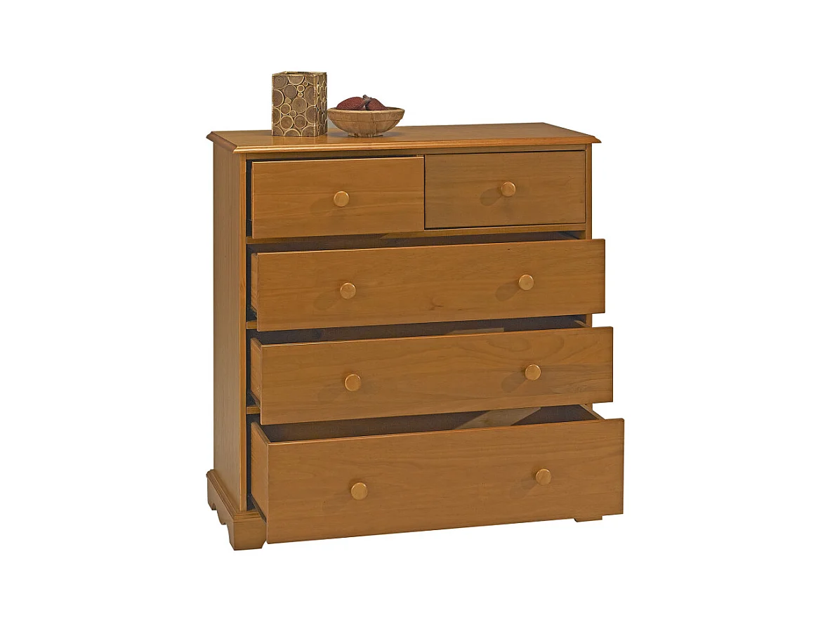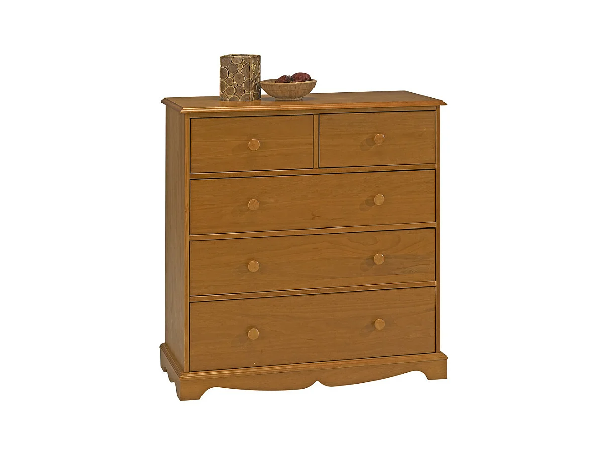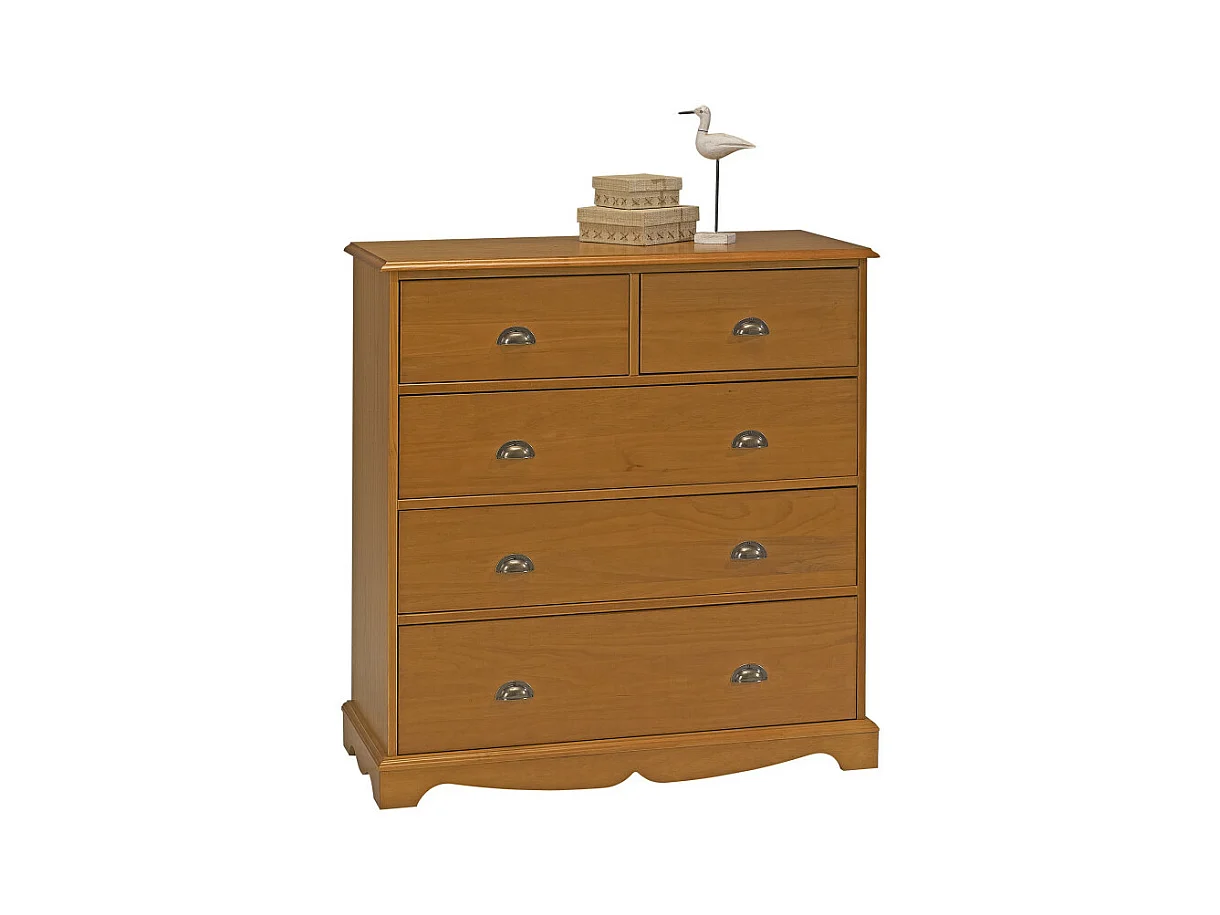 Commode Pin Miel de Style Anglais 5 Tiroirs L 96.2 H 97.4 P 42.5 cm