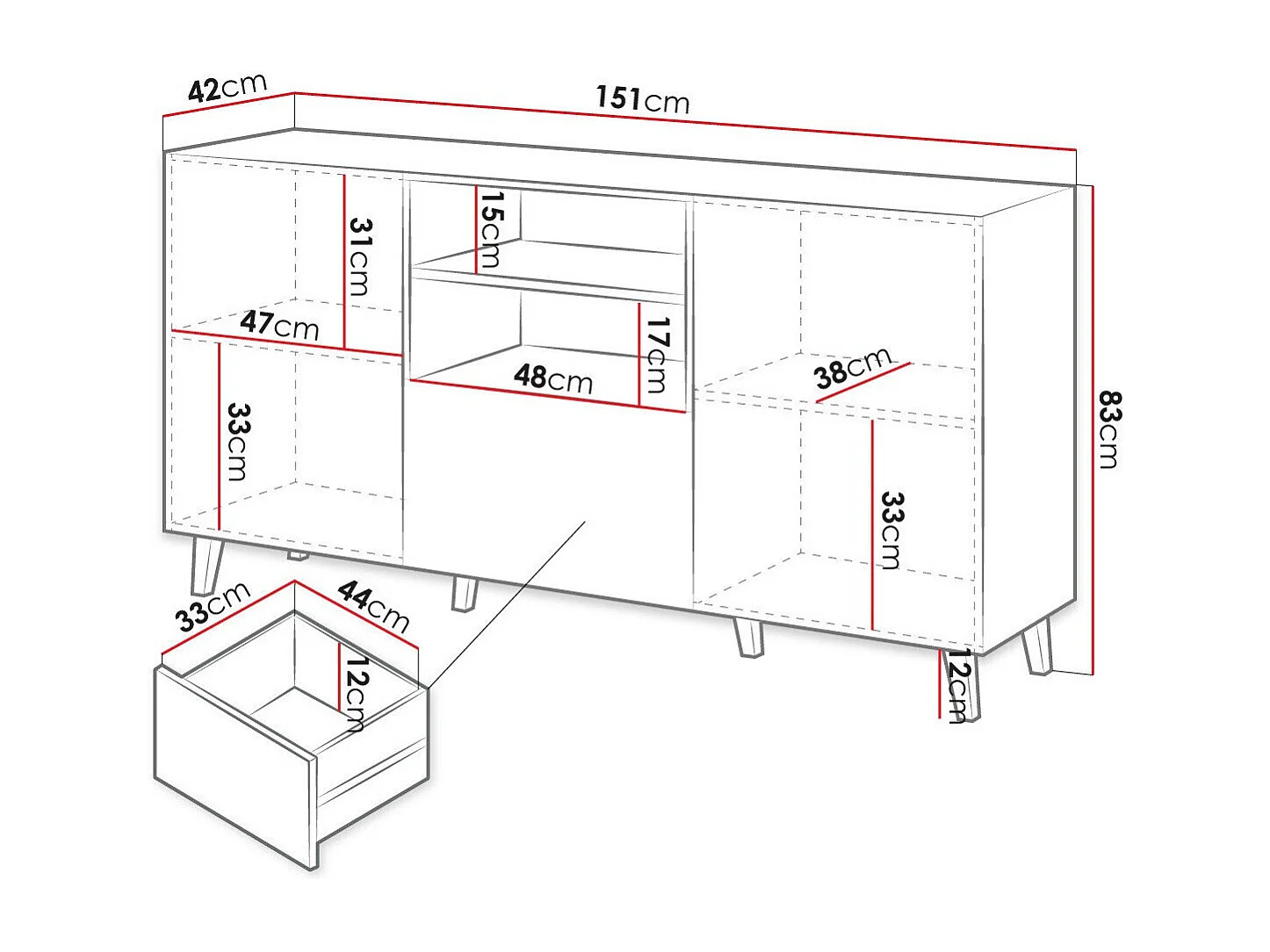 Commode Remeta 109, Anthracite|Noir, Tiroirs et portes, Nombre de tiroirs: 1, 82x151x40cm
