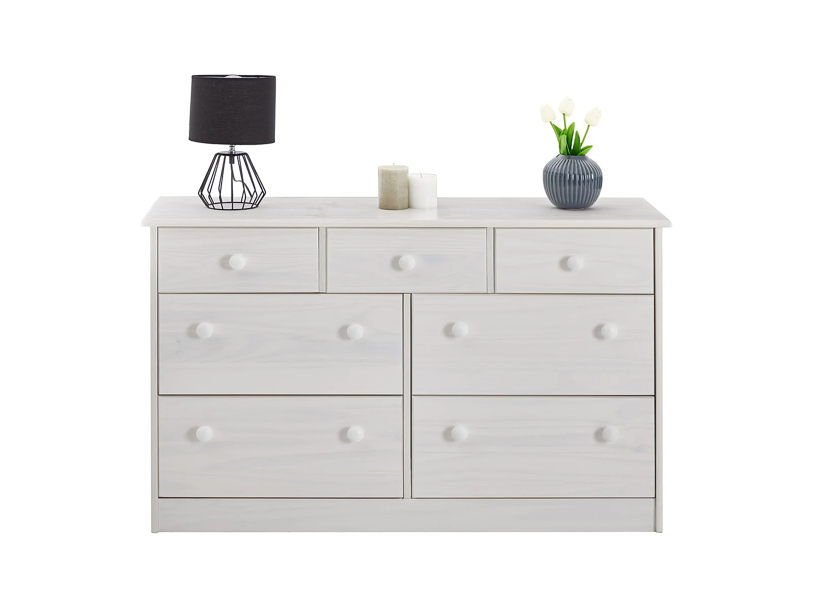 Commode RONDO bahut buffet meuble de rangement avec 3 petits et 4 grands tiroirs, en pin massif lasuré blanc
