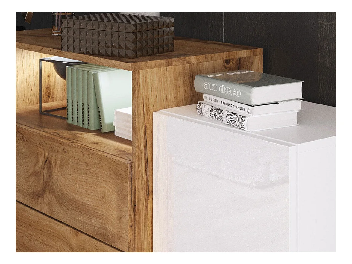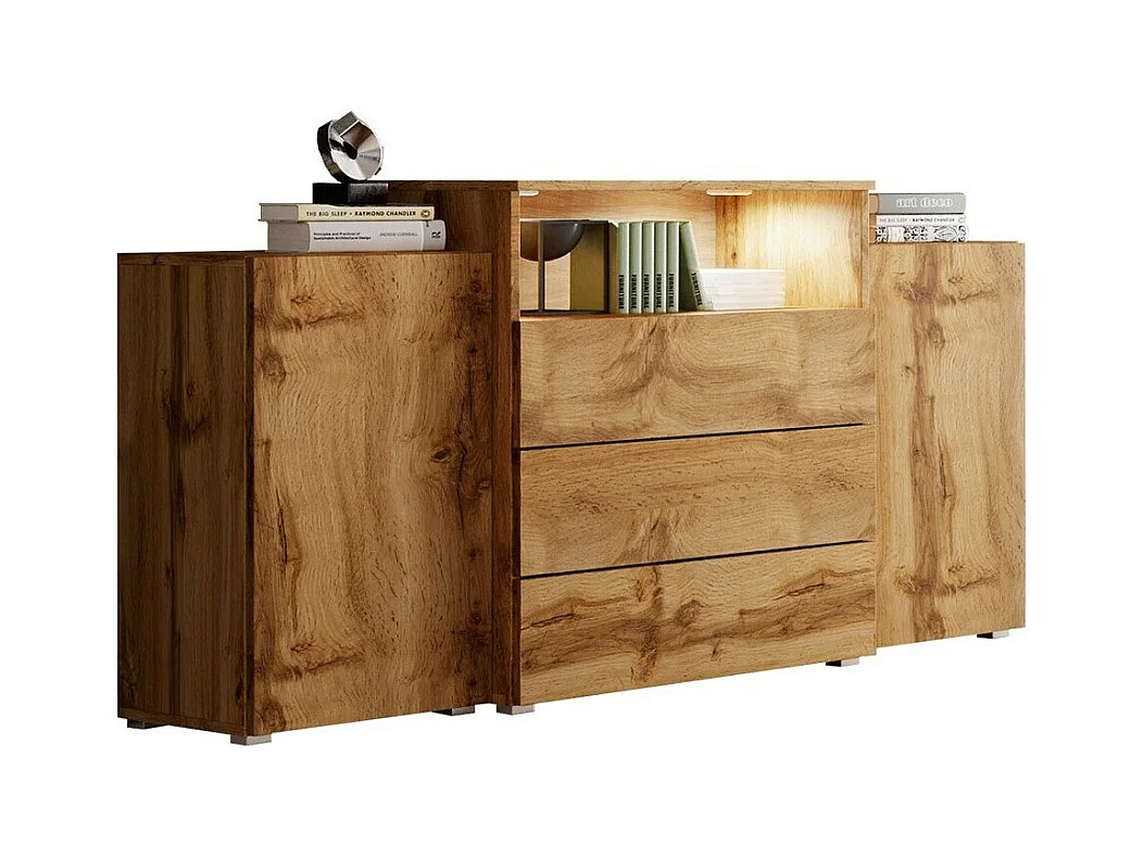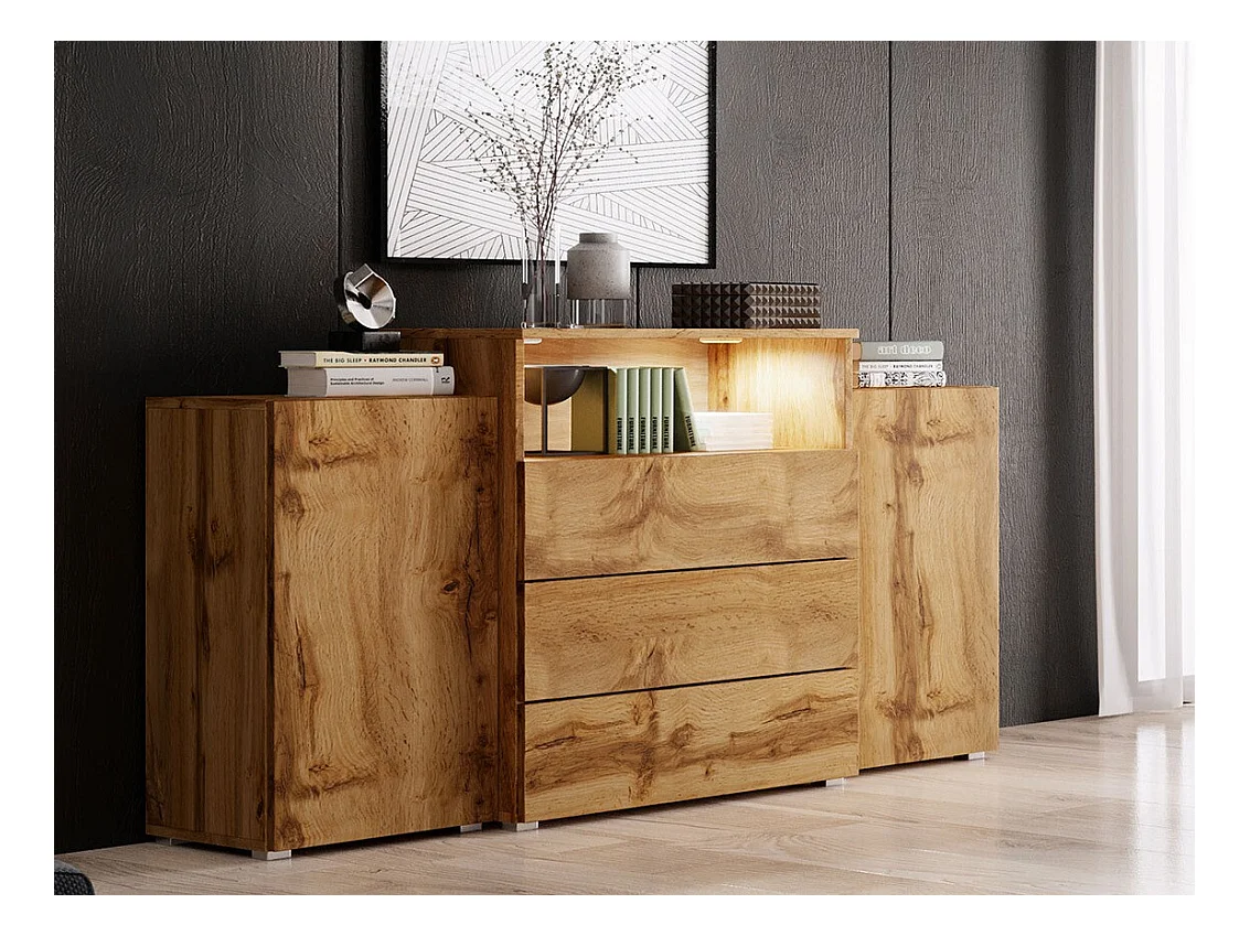 Commode Sarasota 127, Chêne wotan, Avec tiroirs et portes, Nombre de tiroirs: 3, 81x150cm