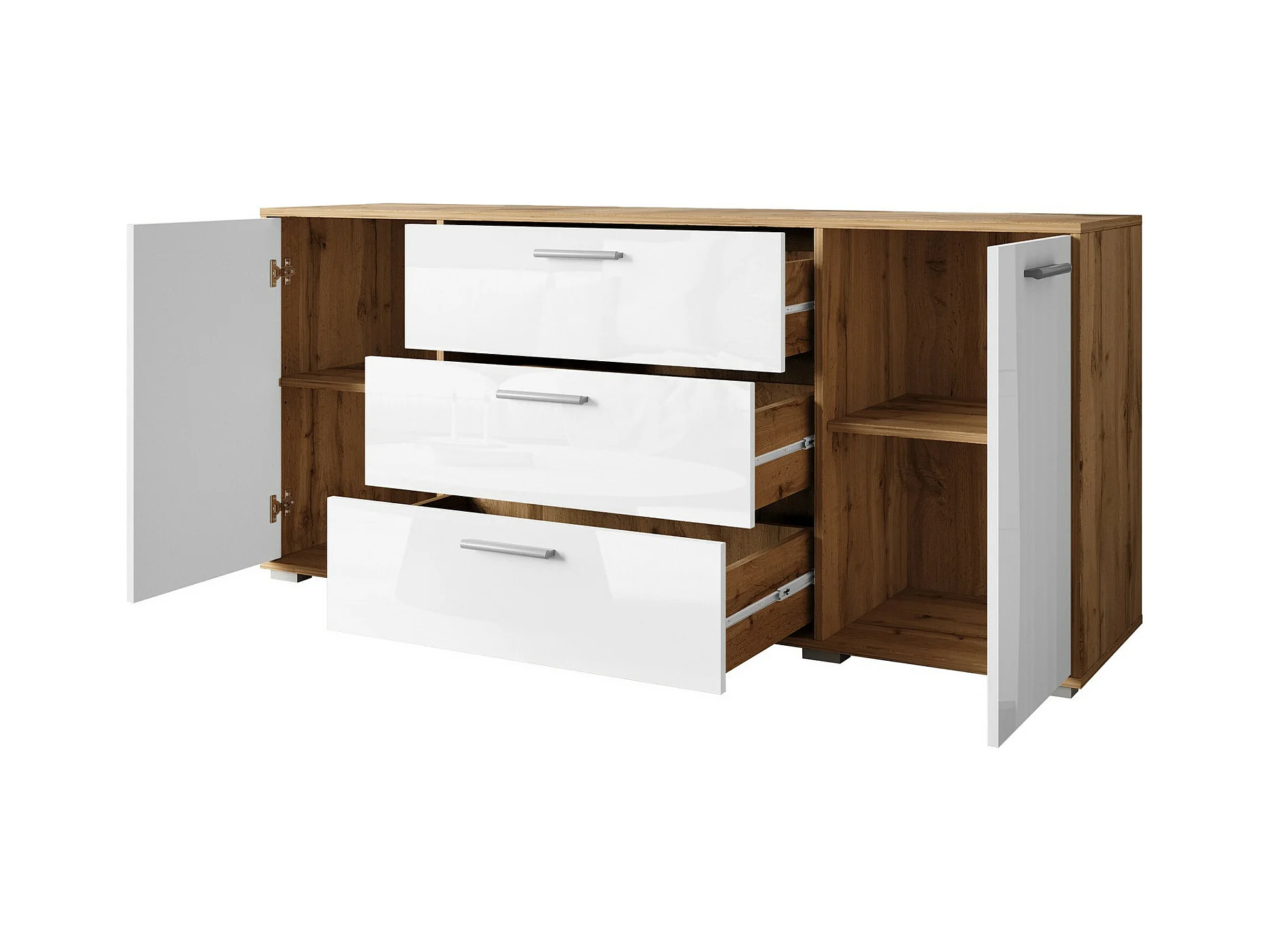 Commode Sarasota 174, Graphite, Avec tiroirs et portes, 68x150x40cm