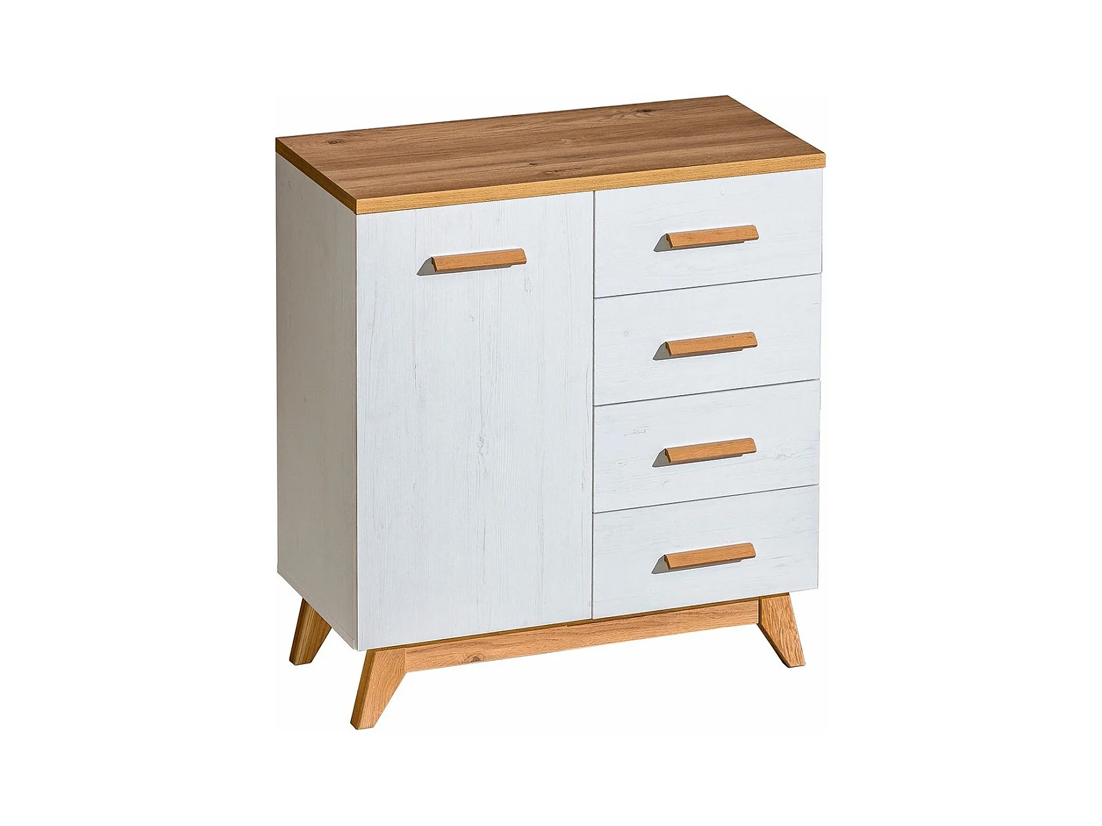 Commode Sorvera 105, Chêne|Pin Anderson, Avec tiroirs et portes, Nombre de tiroirs: 4,