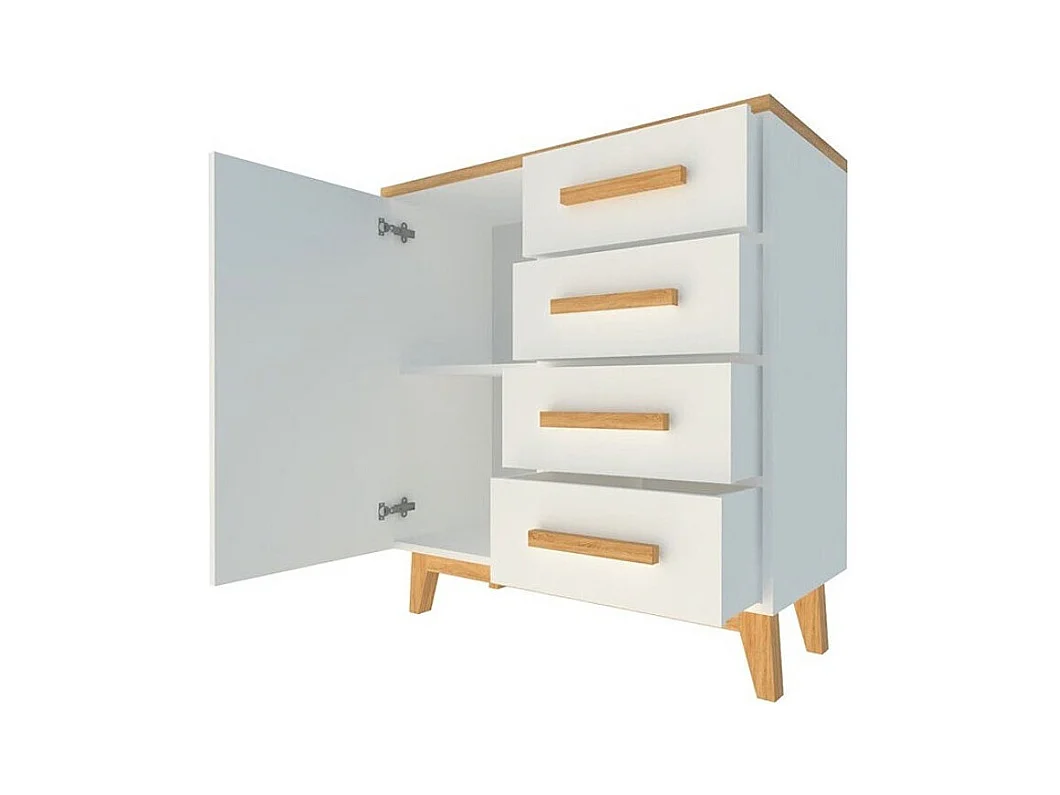 Commode Sorvera 105, Pin Anderson|Chêne, Avec tiroirs et portes, Nombre de tiroirs: 4,