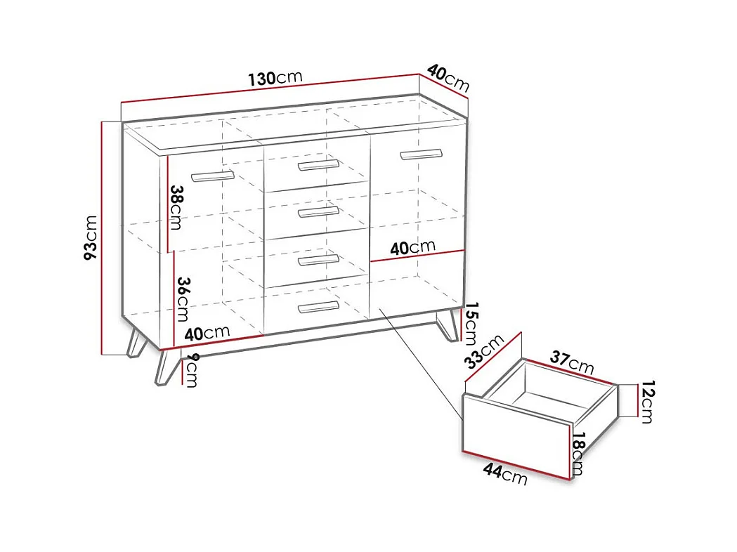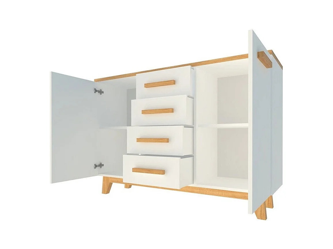 Commode Sorvera 106, Pin Anderson|Chêne, Avec tiroirs et portes, Nombre de tiroirs: 4,
