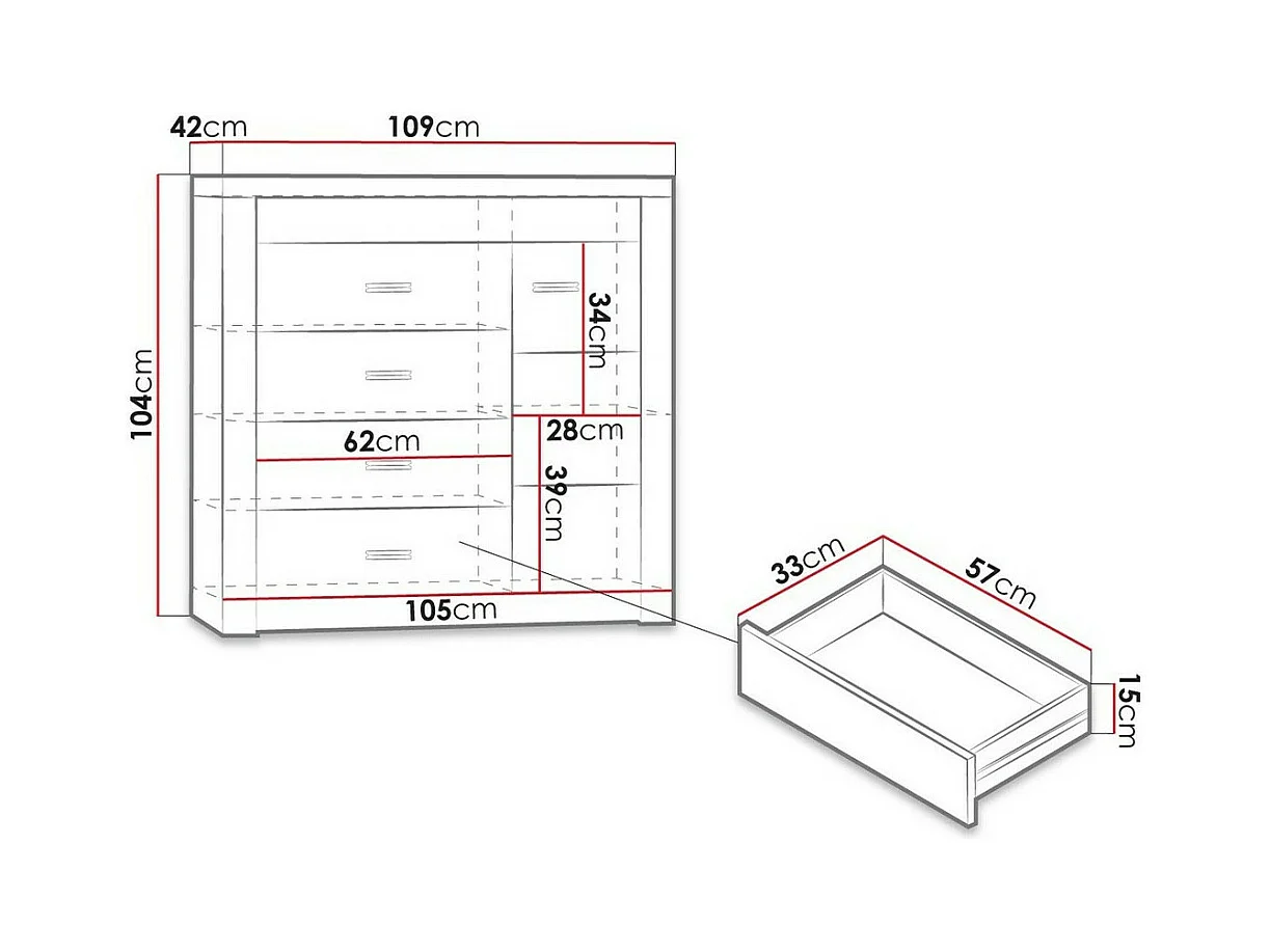 Commode Serfeno 115, Artisanat blanc, Avec tiroirs et portes, Nombre de tiroirs: 4, 104cm