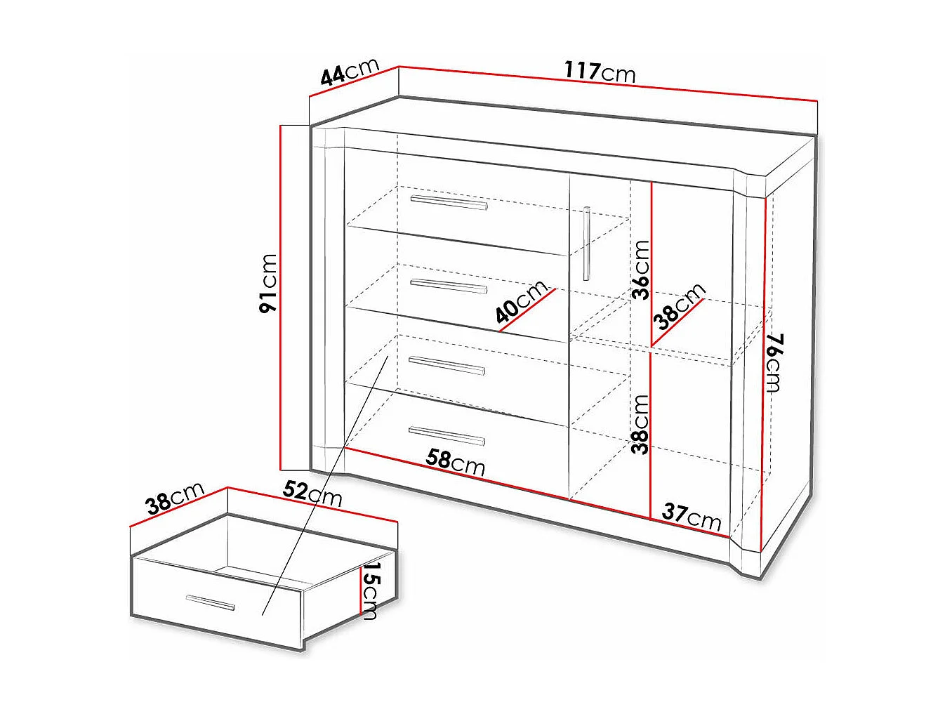 Commode Lorelie 102, Truffe chêne, Tiroirs et portes, Nombre de tiroirs: 4, 91x117x44cm
