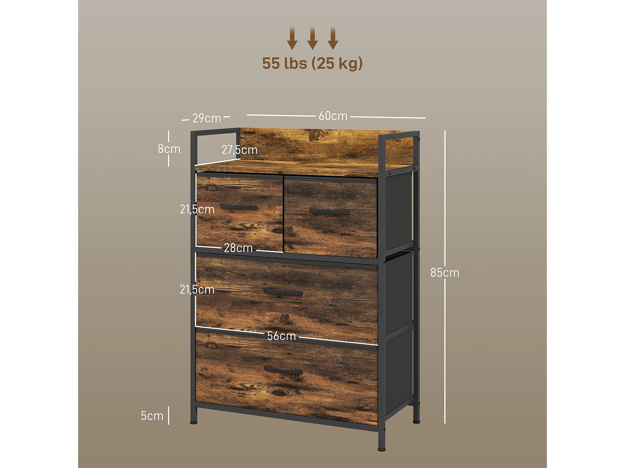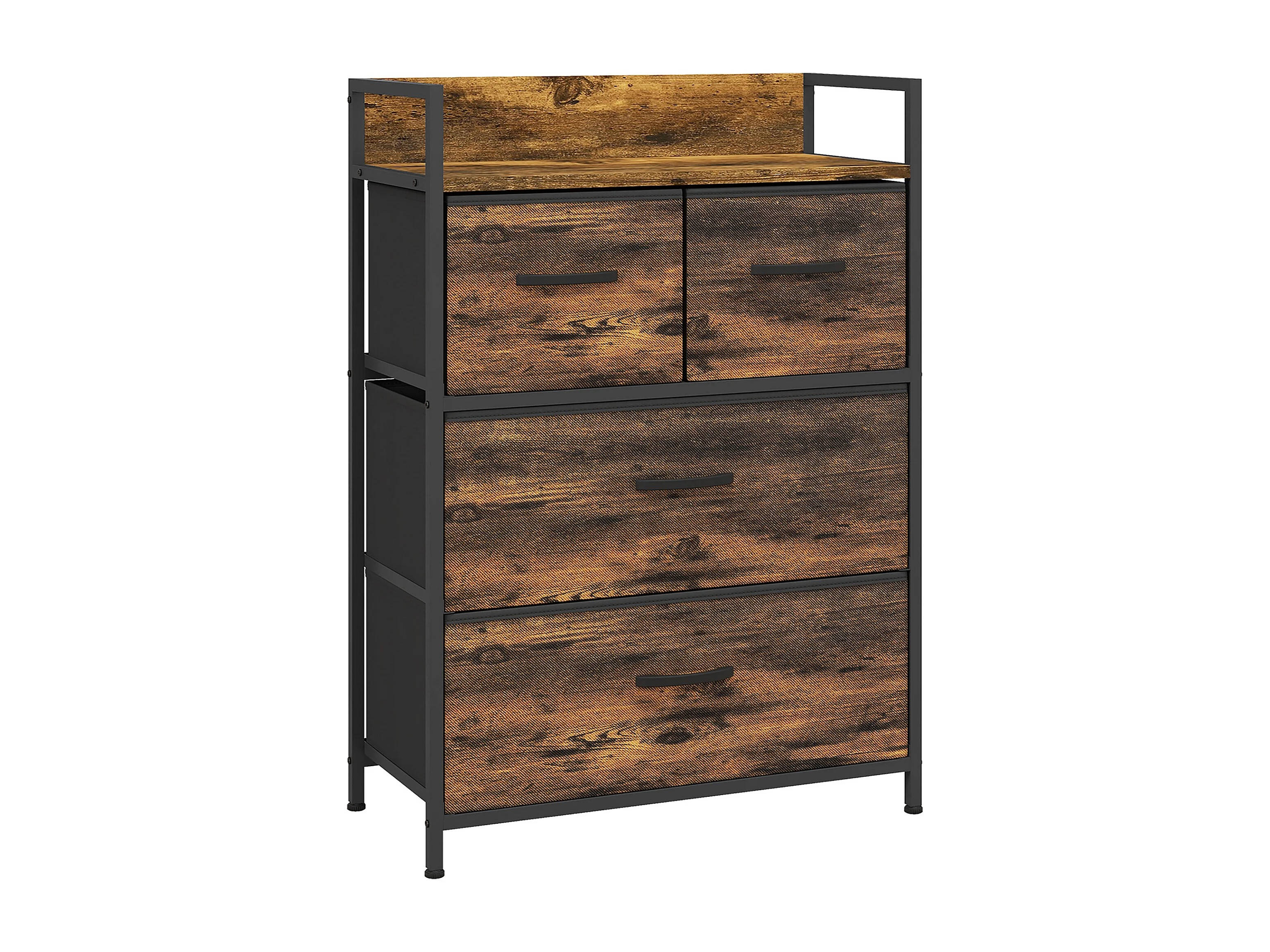 Commode style industriel - 4 tiroirs - acier noir non tissé plateau effet bois vieilli