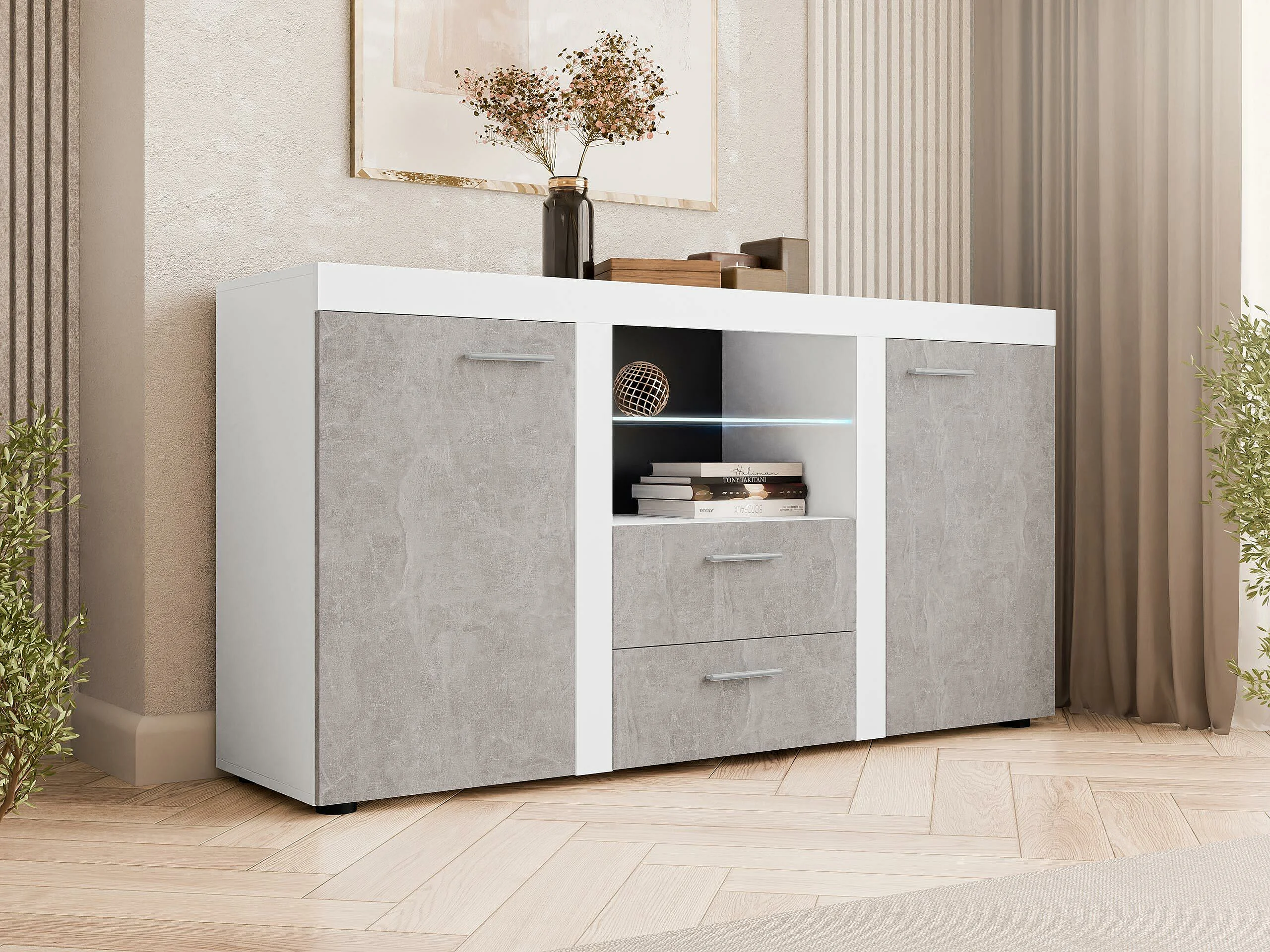 Commode Univio, Béton|Blanc, Tiroirs et portes, Nombre de tiroirs: 2, 82x157x40cm