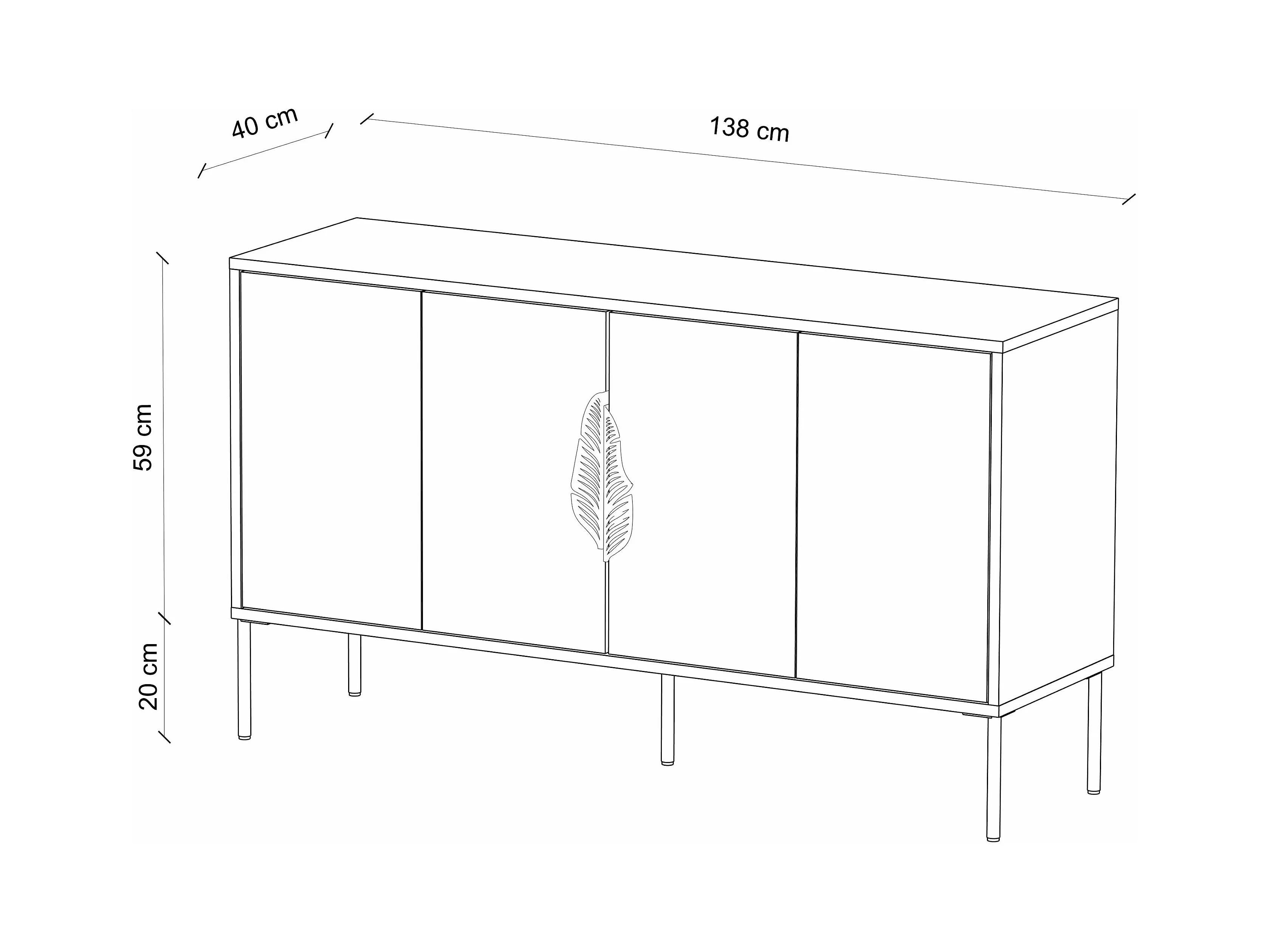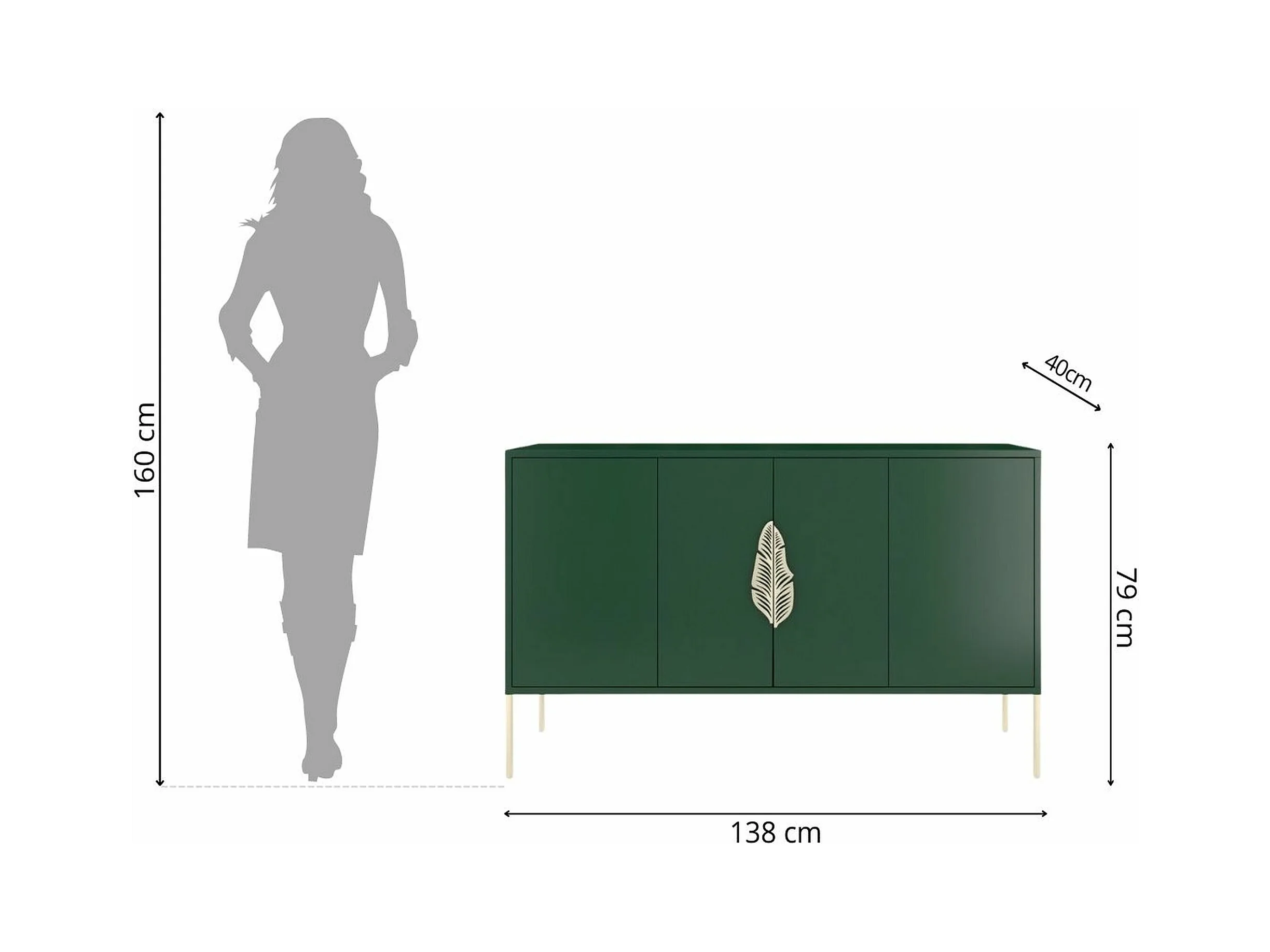 Buffet verte MERLIN avec des accents dorés / 138 cm