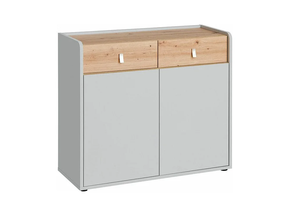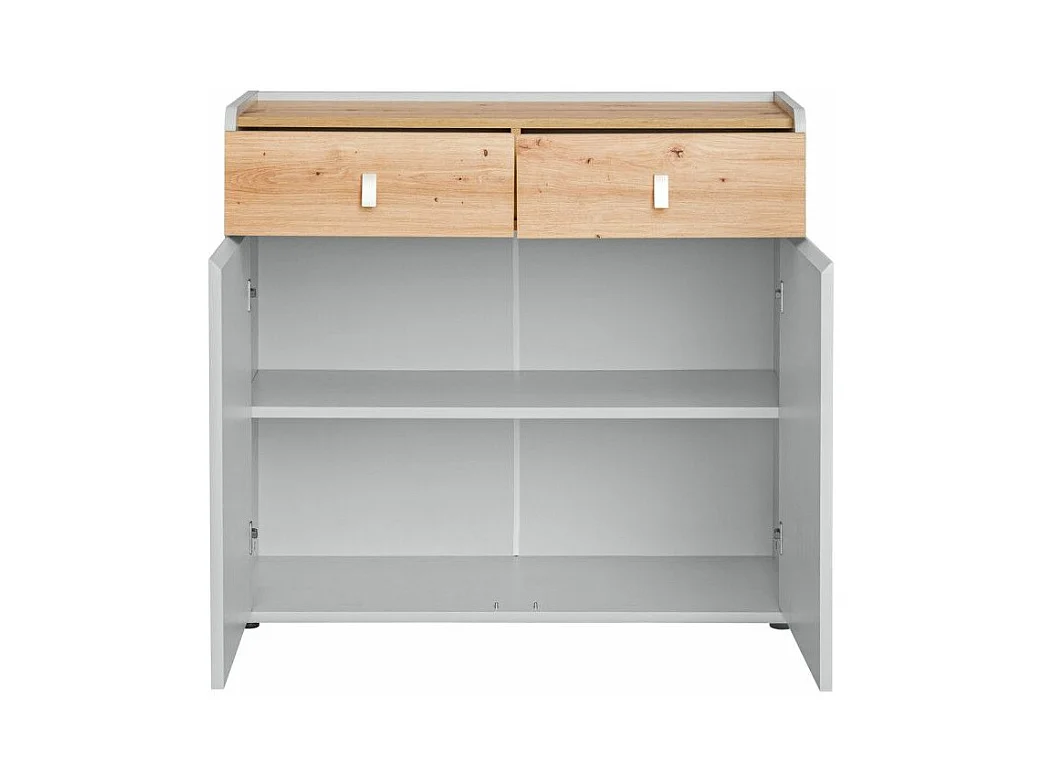 Buffet 2 Portes & 2 Tiroirs "Vivero" 94cm Gris & Naturel