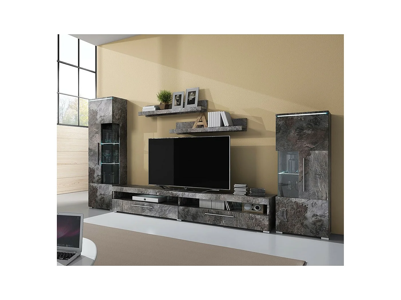 Composition de 5 meubles design pour salon coloris gris effet ardoise collection BOMBAY