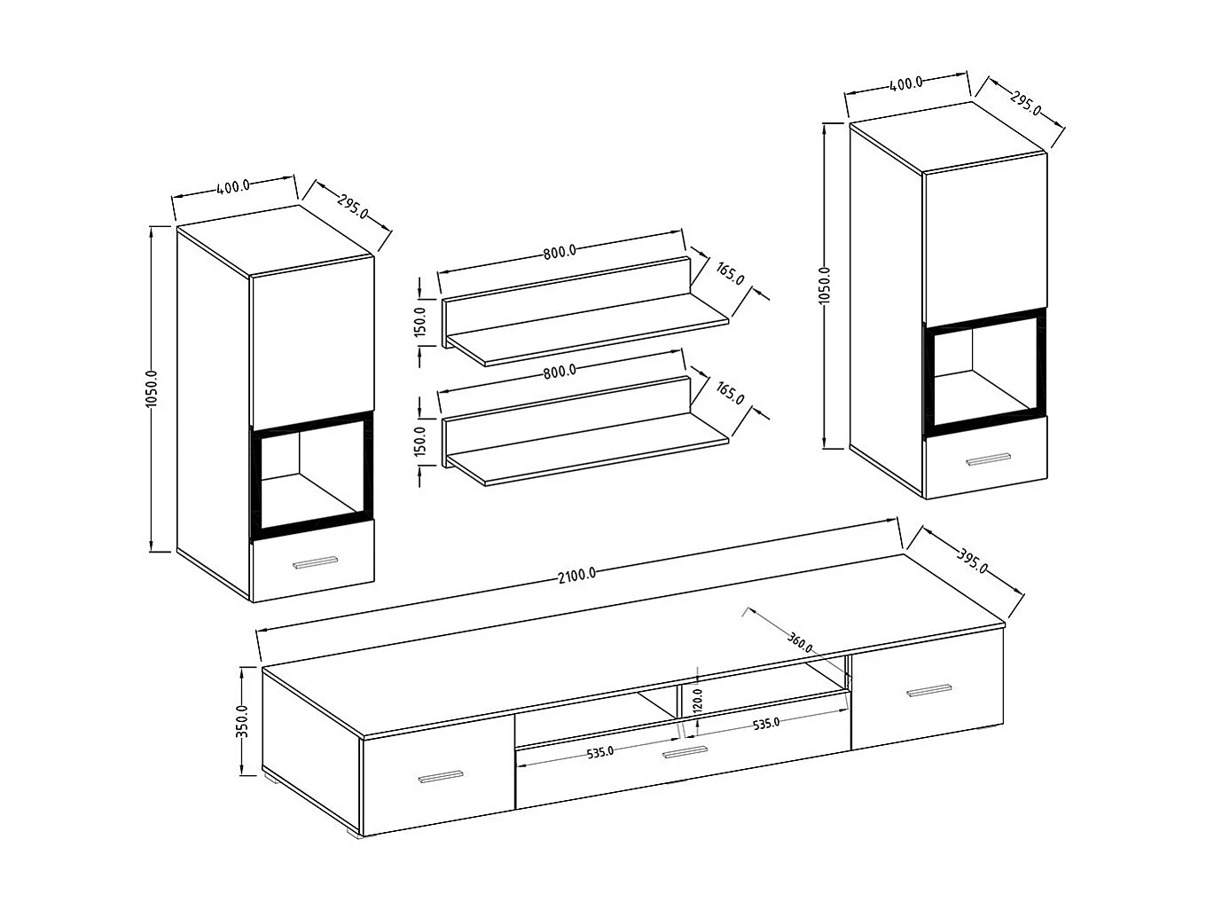 Composition de 5 meubles design pour salon coloris gris effet béton collection CONNOR