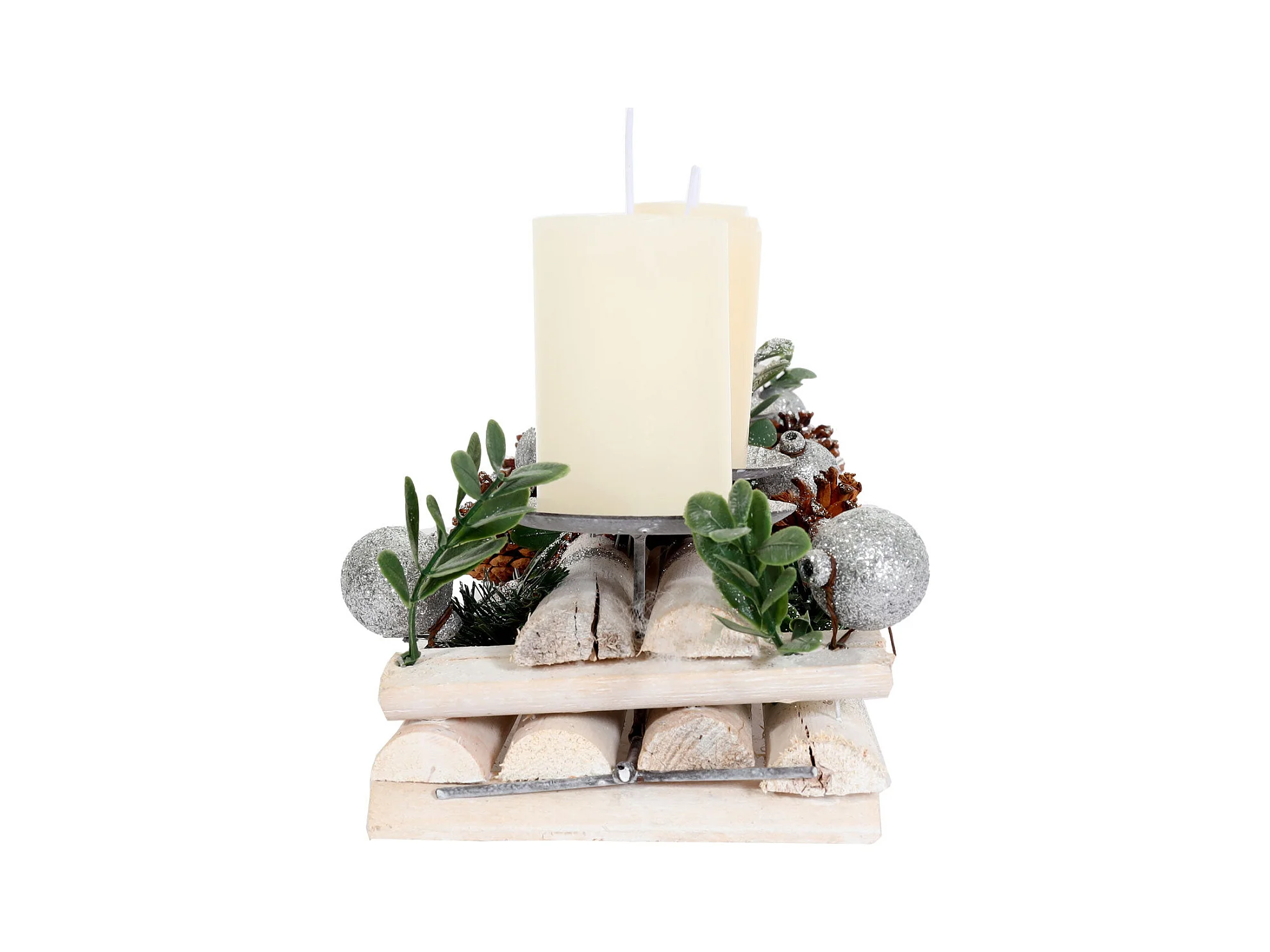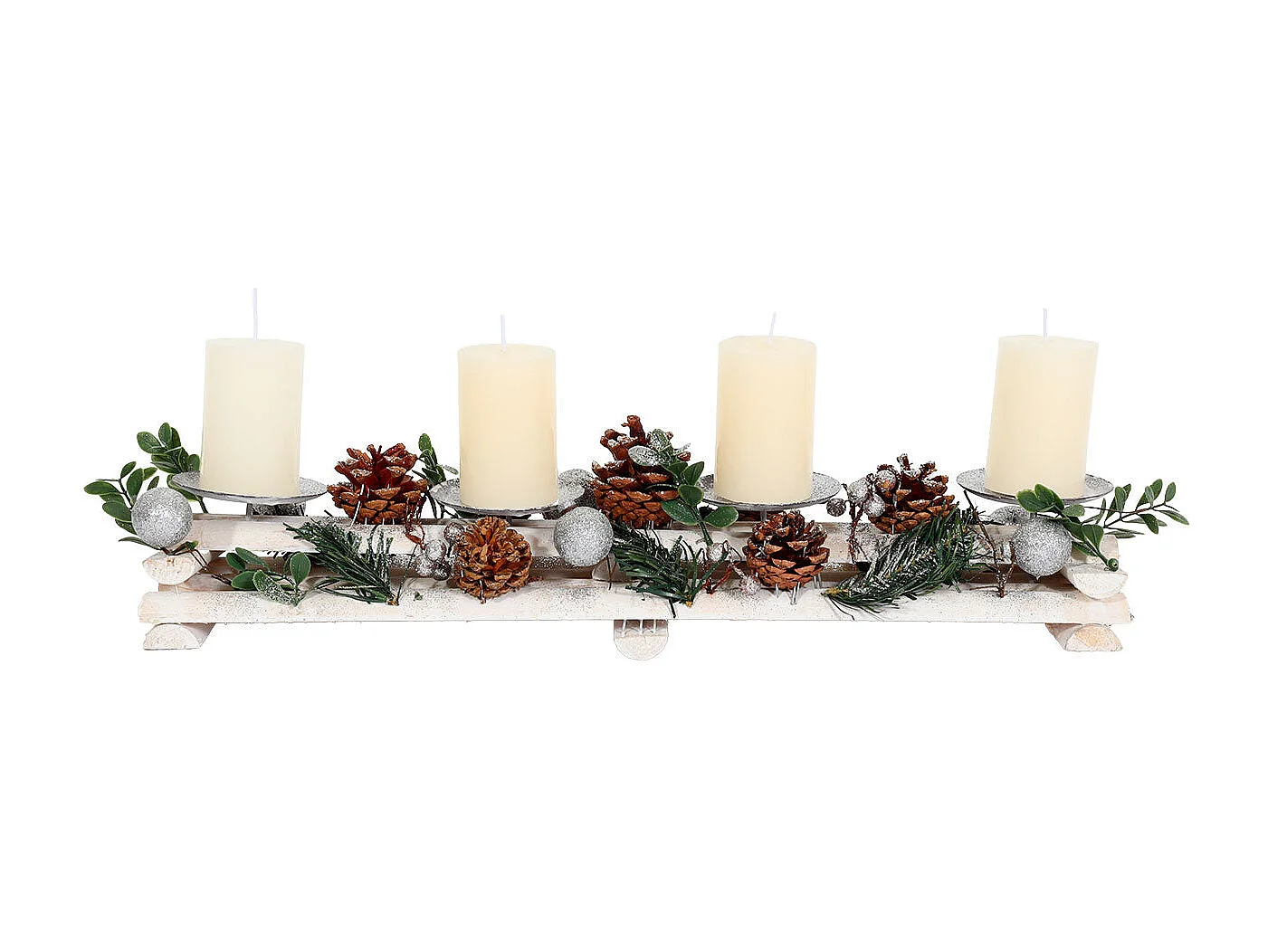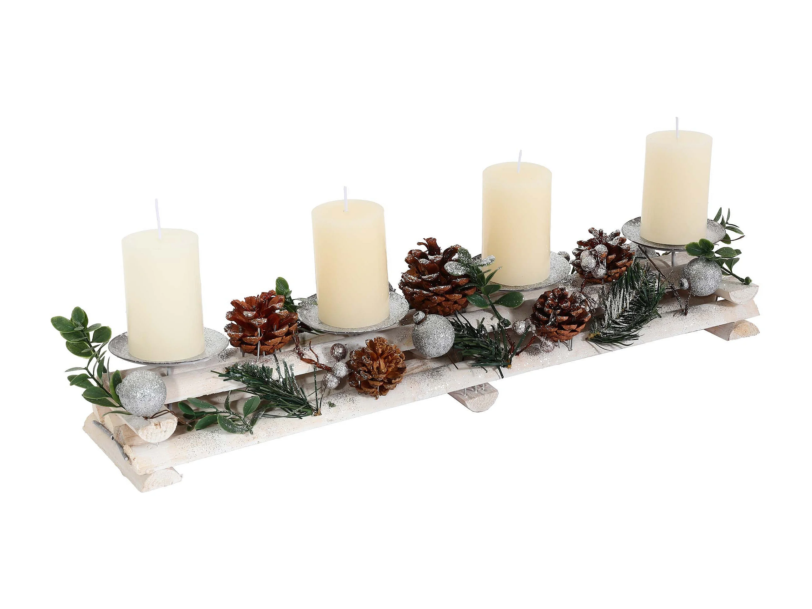 Composition de l'Avent avec bois blanche 18 x 13 x 51 cm 04_0005770