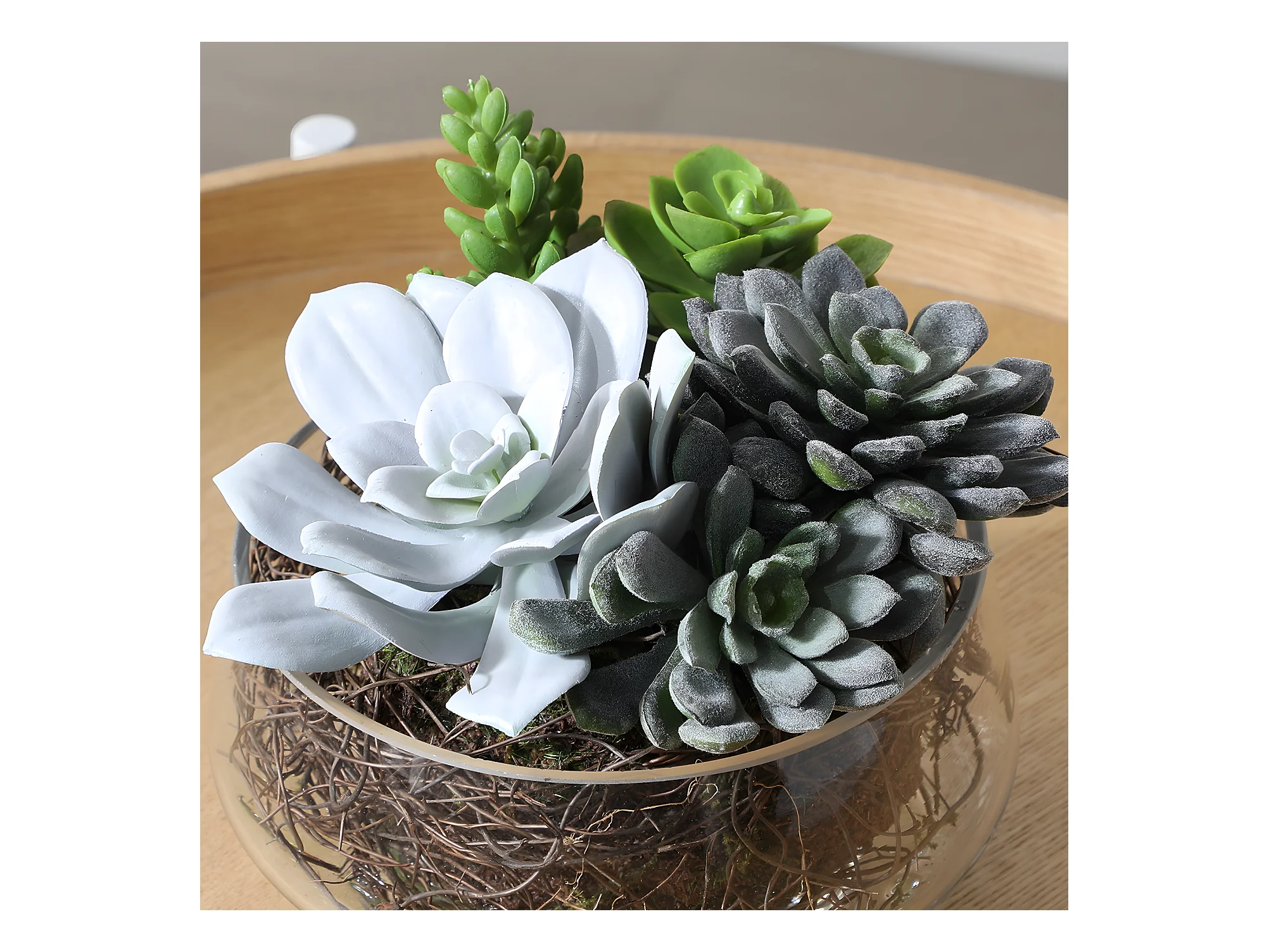 Composition de Succulentes en vase transparent Petit Format - Vert