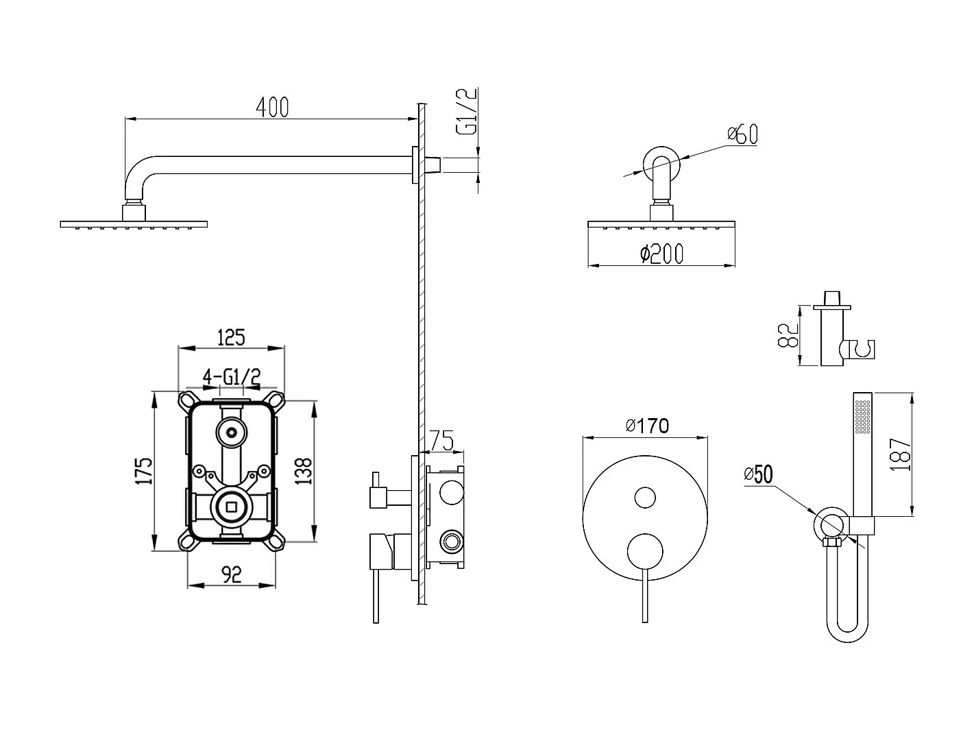 Composition mitigeur de douche encastrée Noir - Corbeau