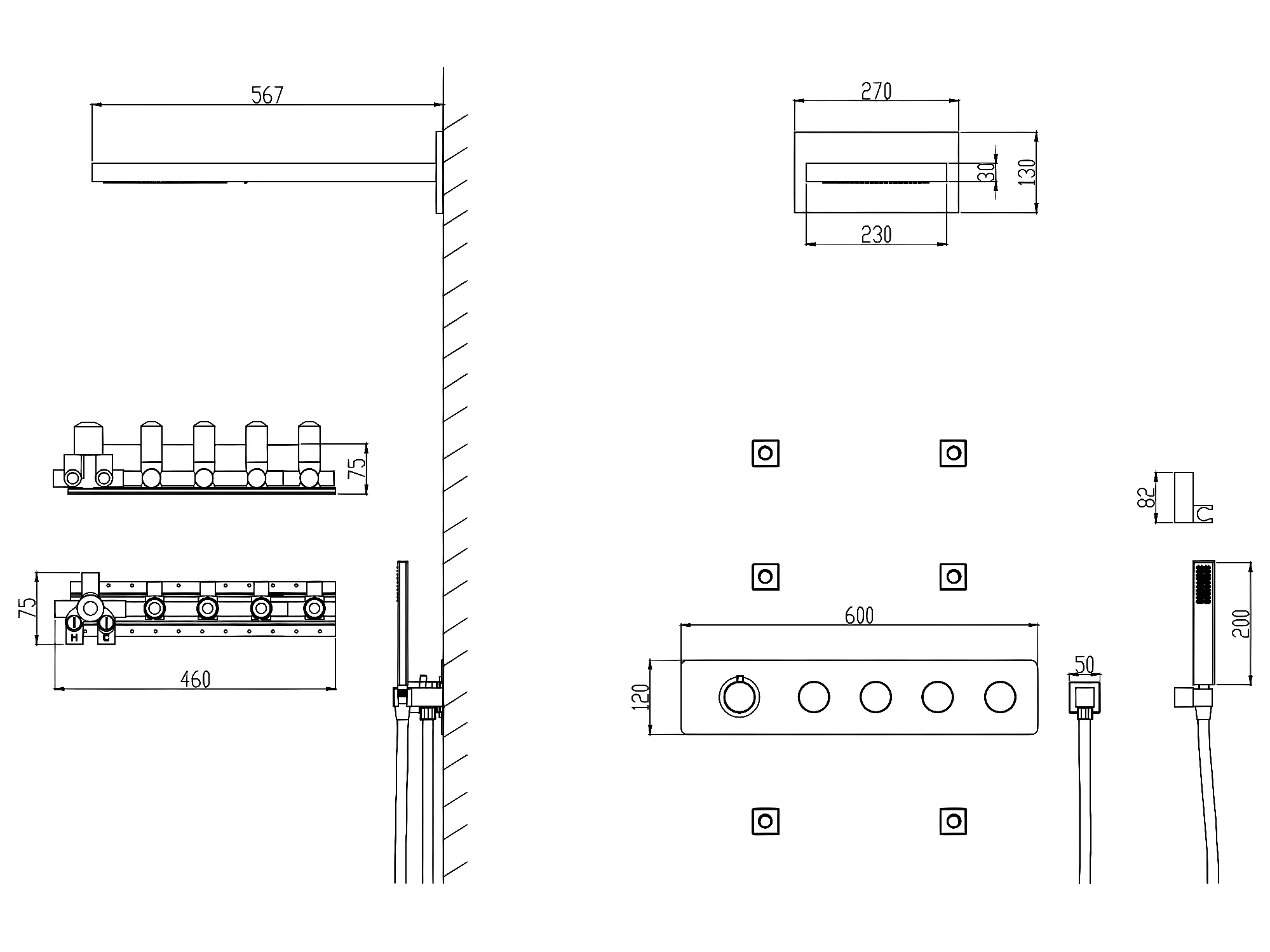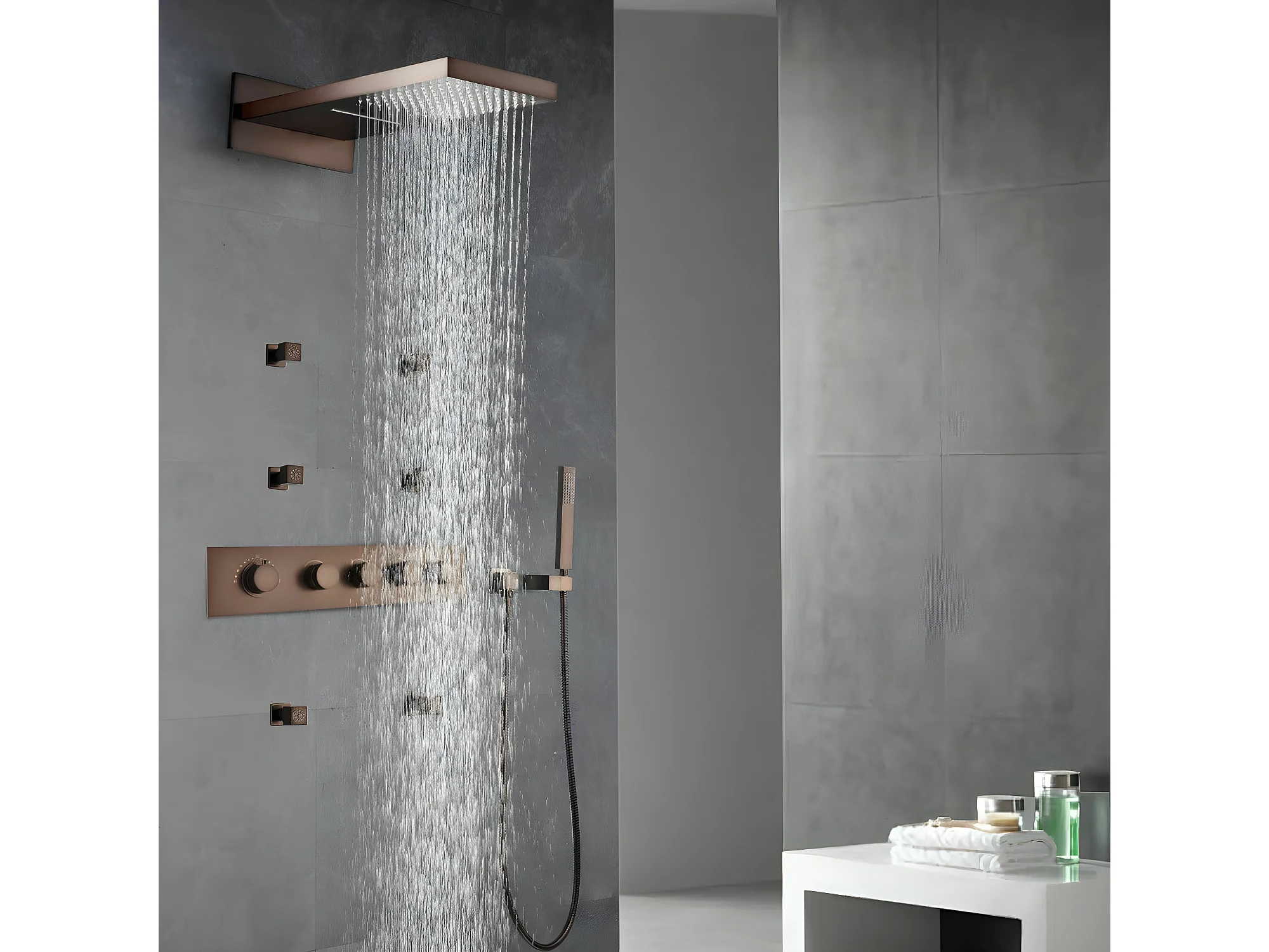 Composition mitigeur de douche thermostatique encastrée cuivré - Celaya