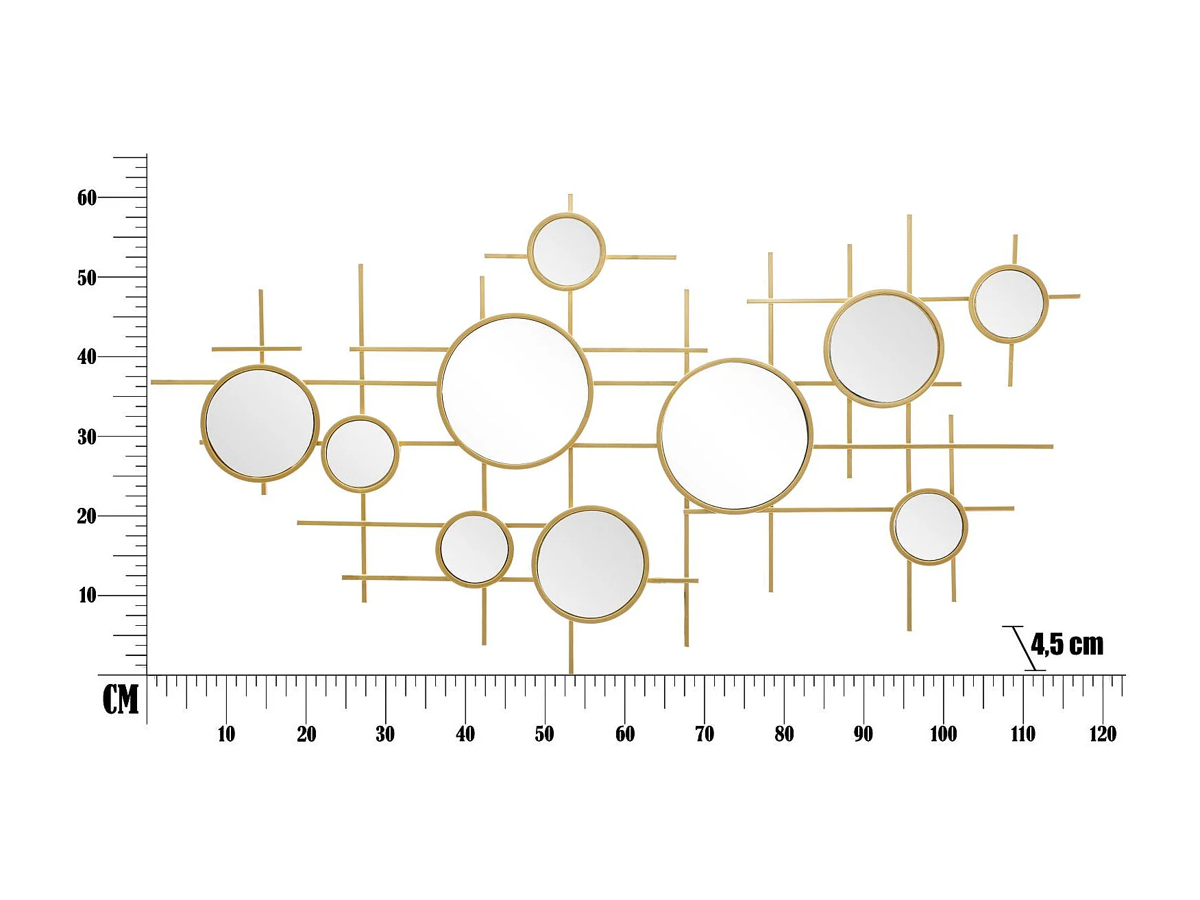 Miroir Mural Composition Déco "Gloxy" 117cm Or