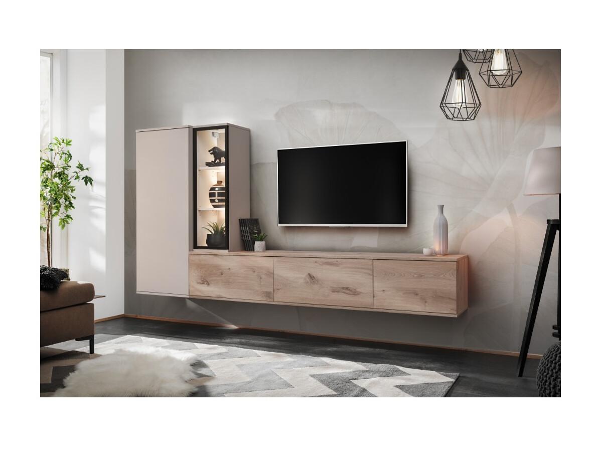 Composition murale CALIRE – Meuble TV et rangements suspendus – Chêne Vicking et Cashmere