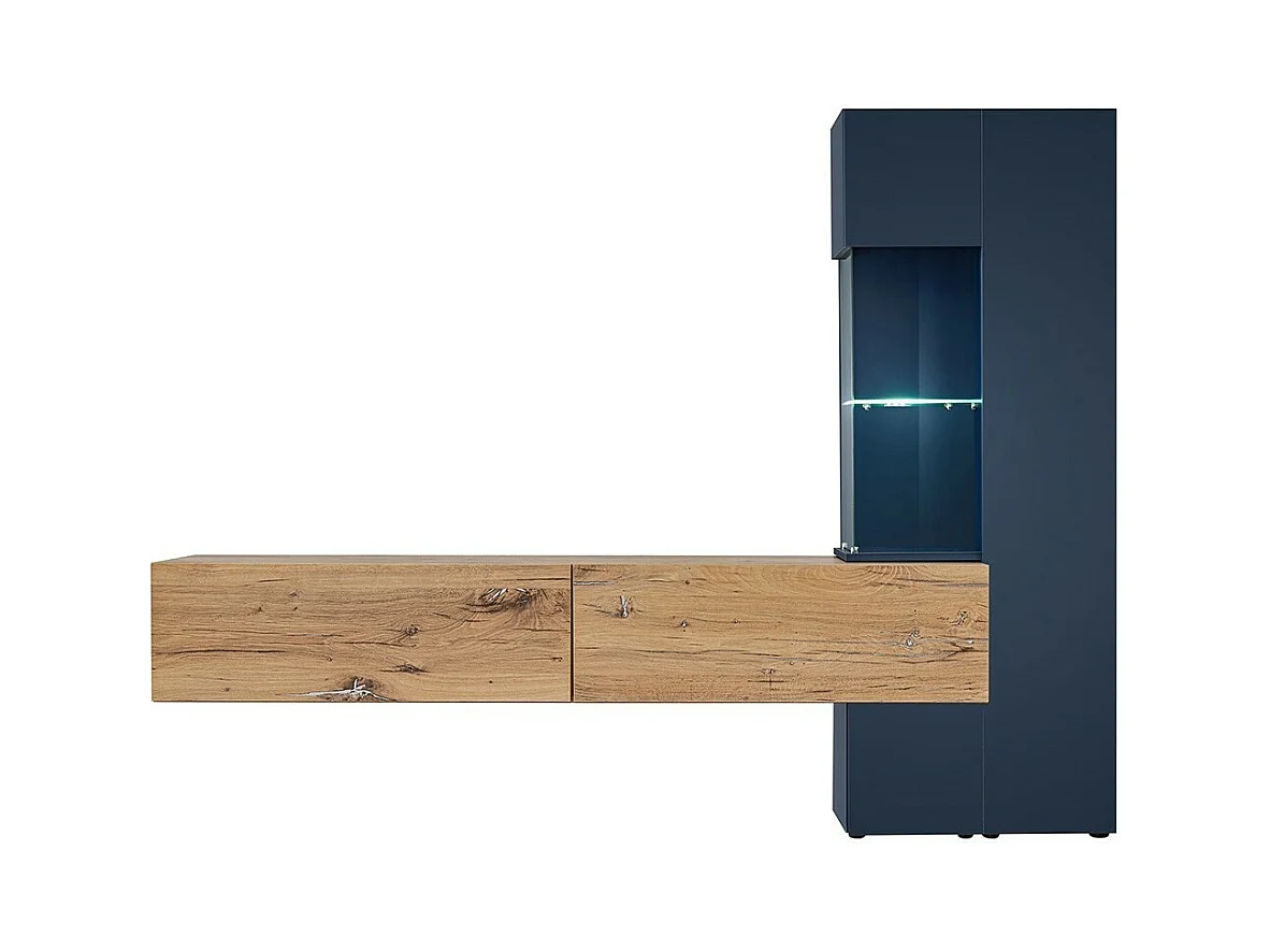 Meuble TV MARIANO – Ensemble complet, coloris bleu marine et chêne