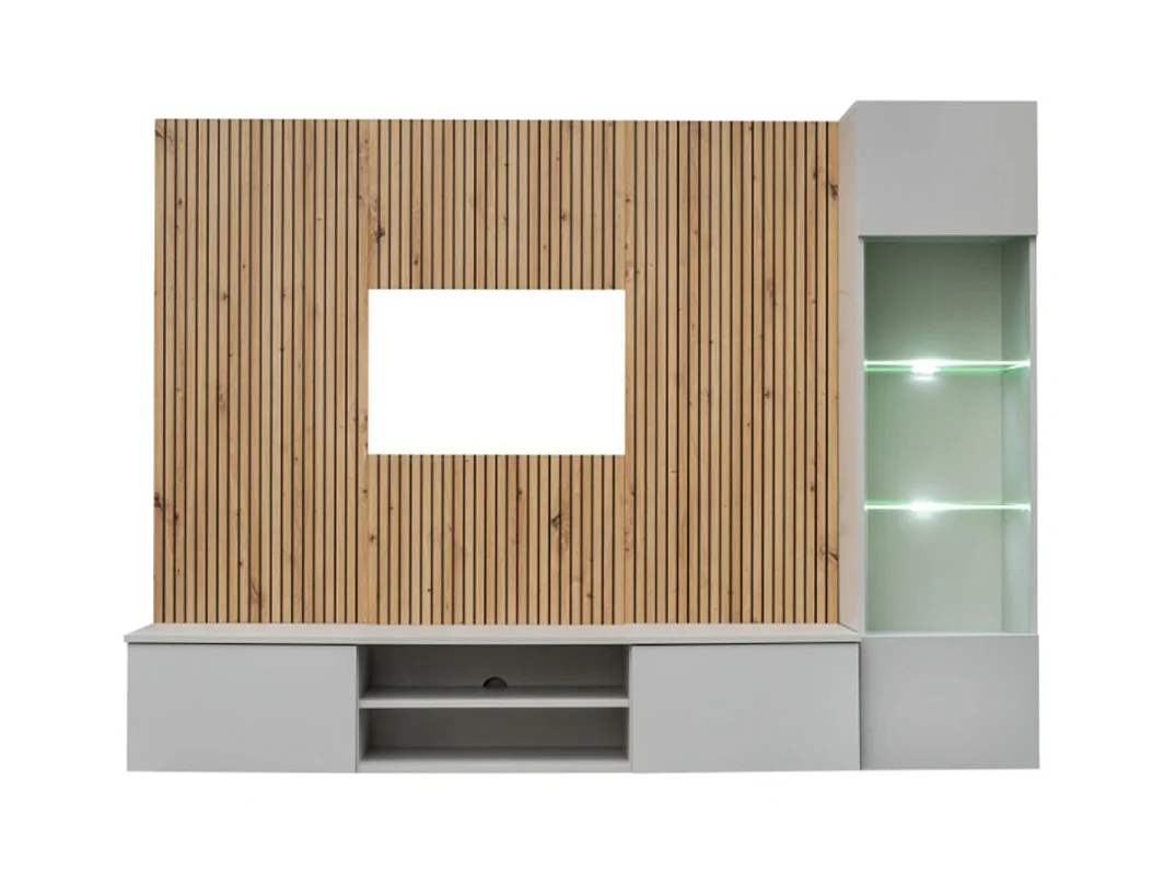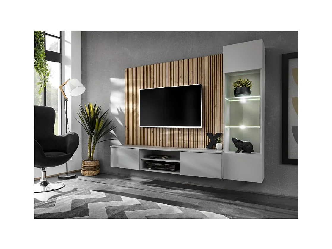 Composition murale IXAR – Meuble TV et vitrine suspendue – Avec LED