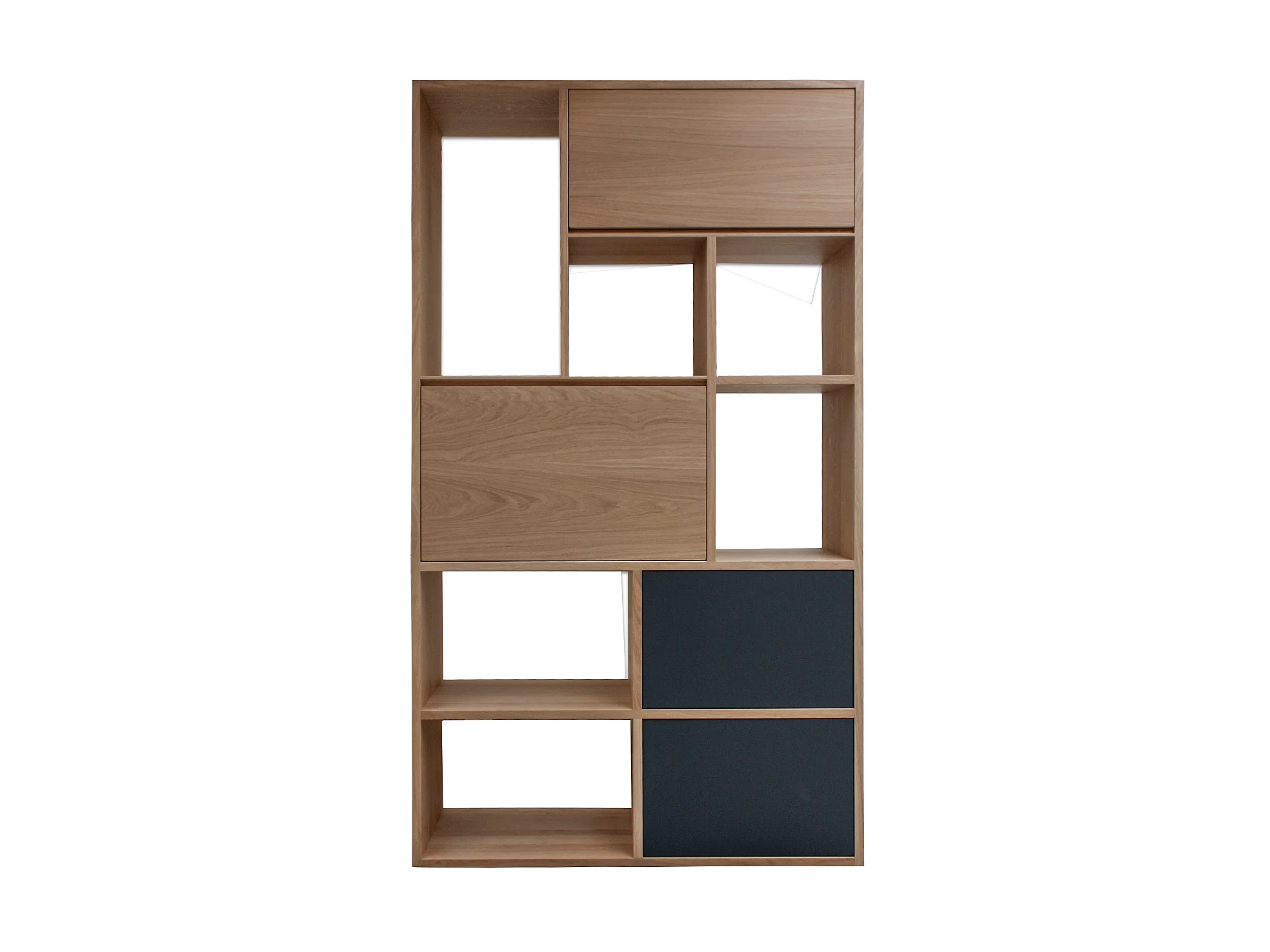 Composition secrétaire chêne naturel massif et laqué, 2 tiroirs, 1 abattant, 1 relevant - 108L x 38P