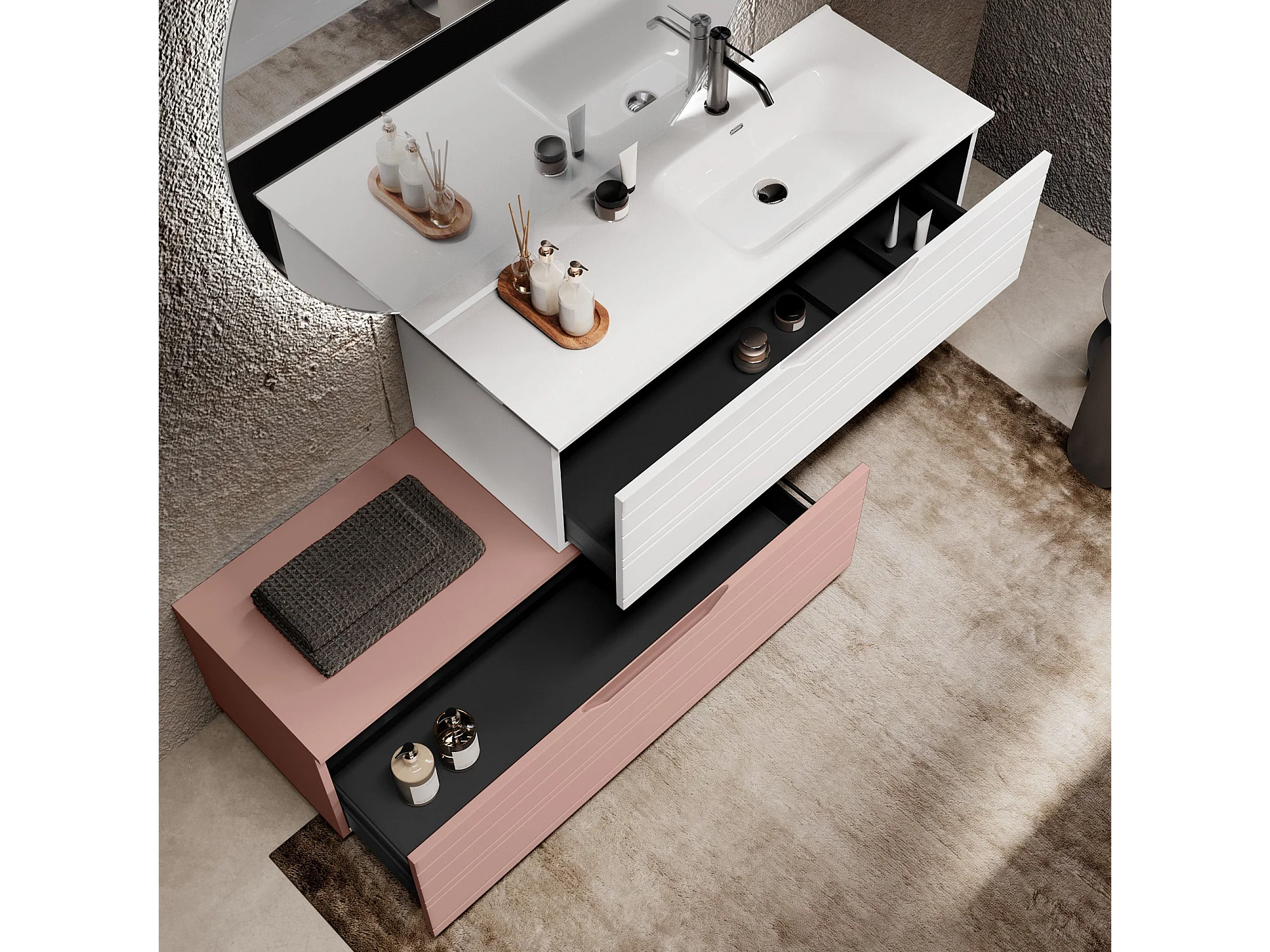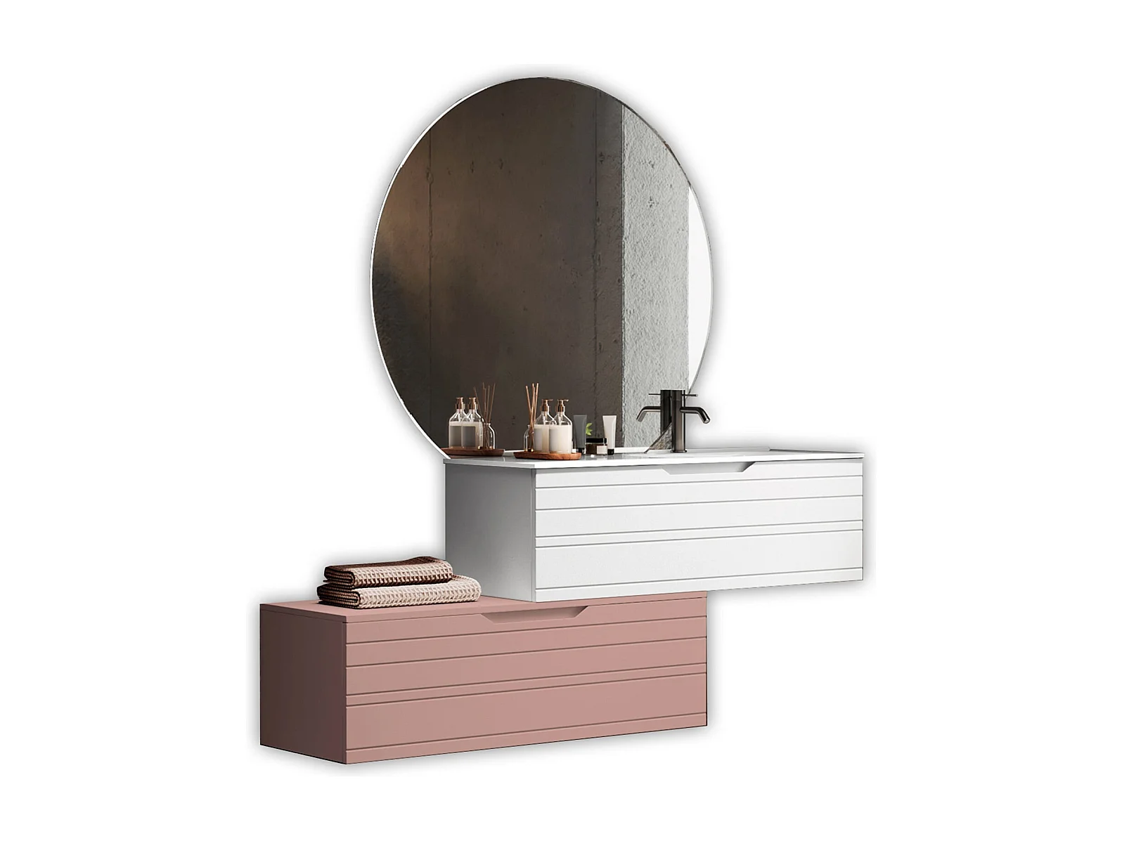 Composition vasque droite 4 pièces SOLMIRA blanc/rose poudré