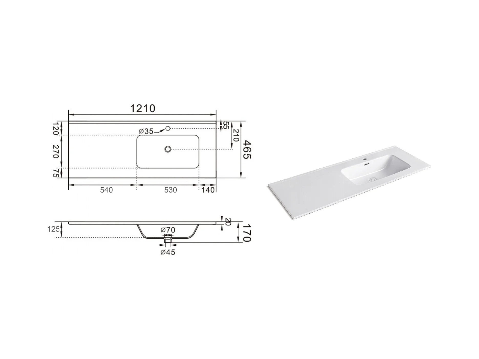 Composition vasque droite 4 pieces VENERE chène rio