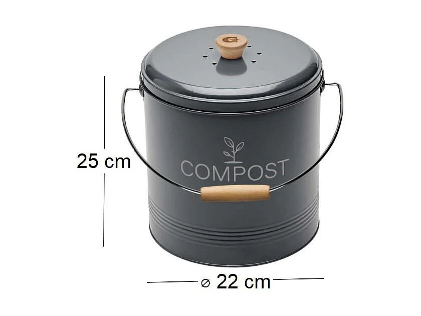 Composteur de cuisine en métal avec filtre et seau en platique 8 litres