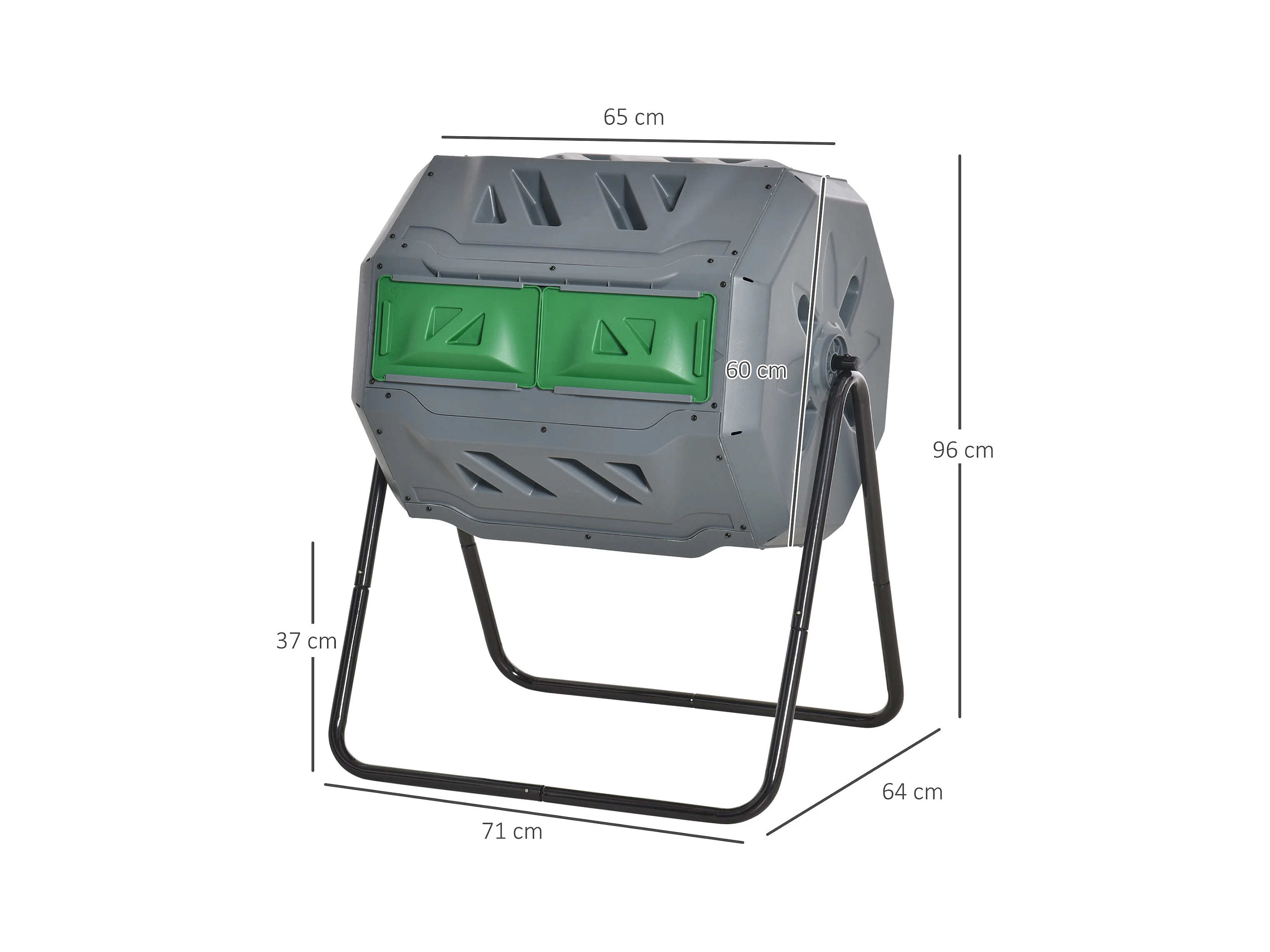 Composteur de jardin - bac à compost pour déchets - rotatif 360° - double chambre 160 L - acier noir PP vert gris