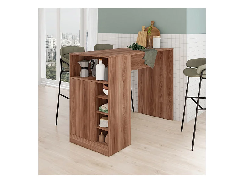 Comptoir de Cuisine - Table 1 Porte 7 Niches Châtaignier L 135 H 100 P 60 cm