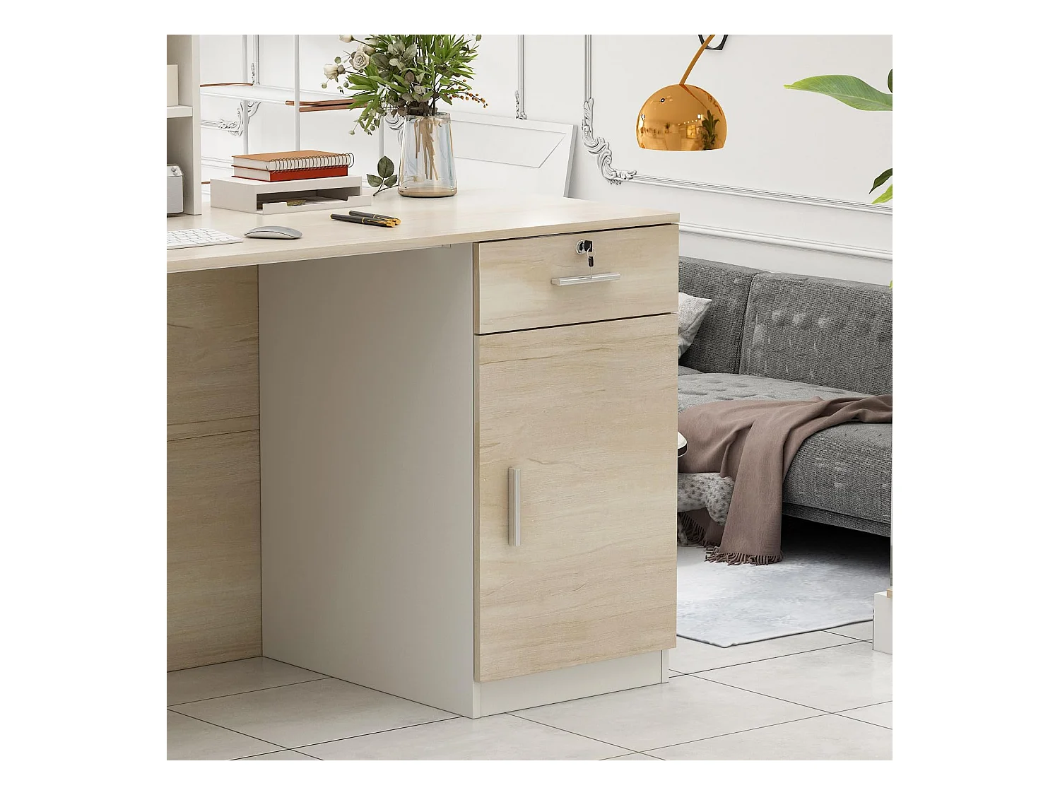 Comptoir de réception avec compartiments ouverts Tiroir verrouillable étagères Salon Bureau Bois&Blanc 140x60x110cm