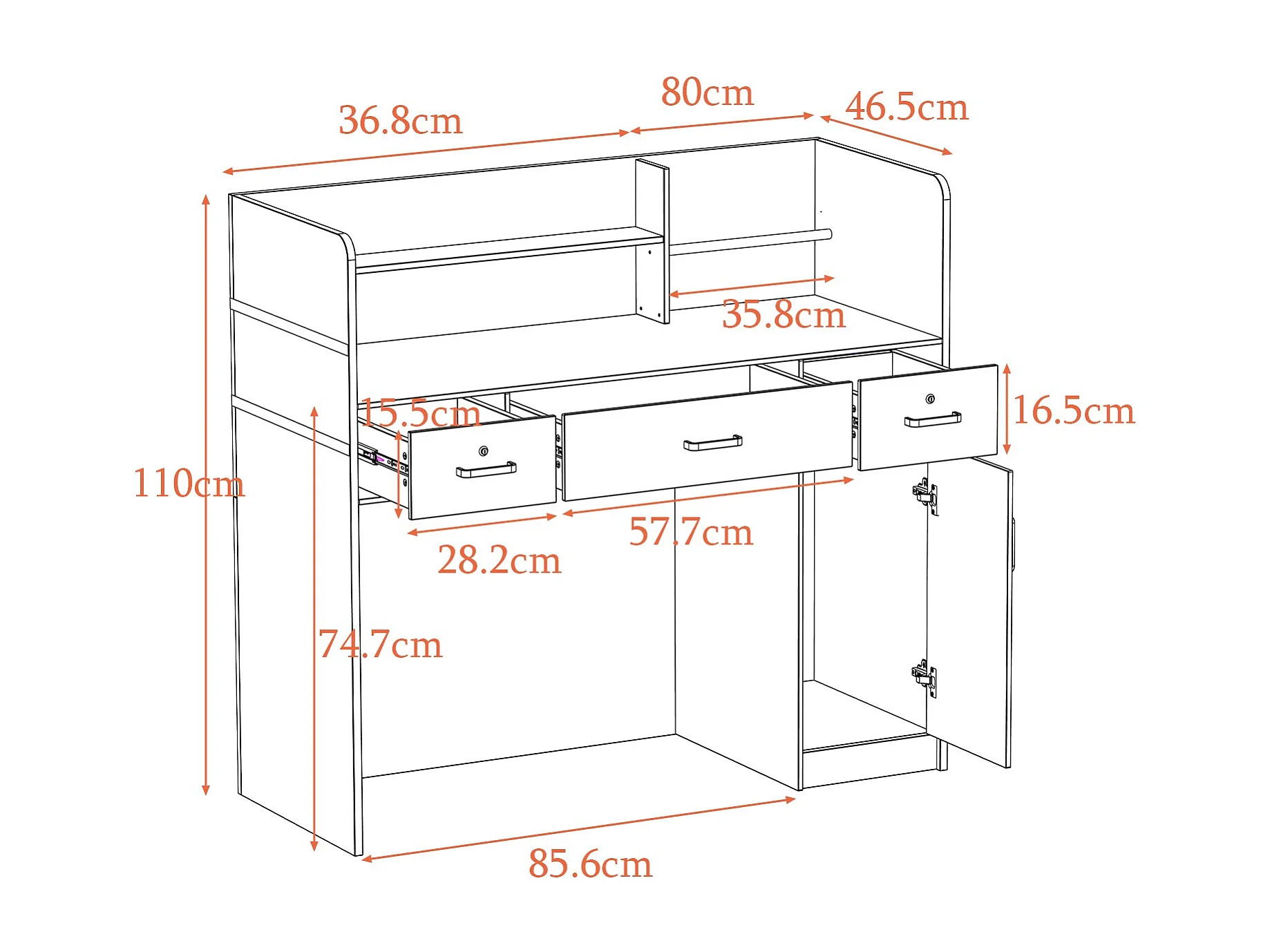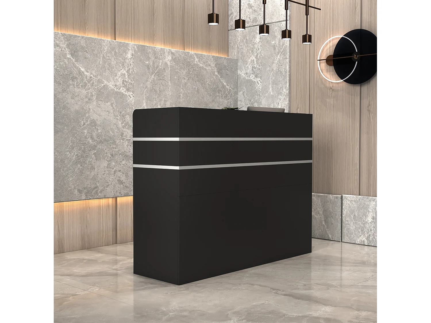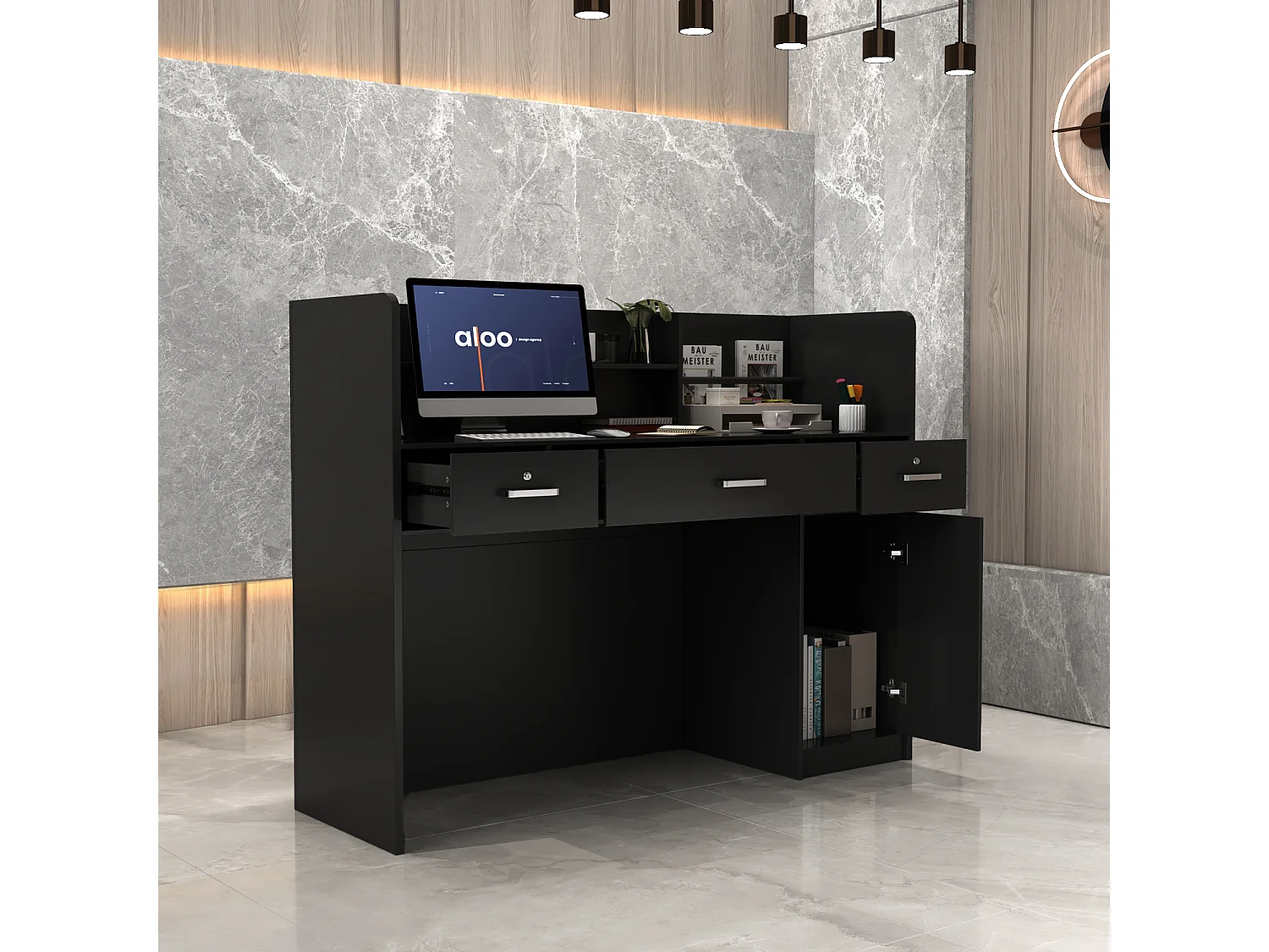 Comptoir de réception avec compartiments ouverts étagères Tiroir verrouillable Salon Bureau 120x48x110cm Noir