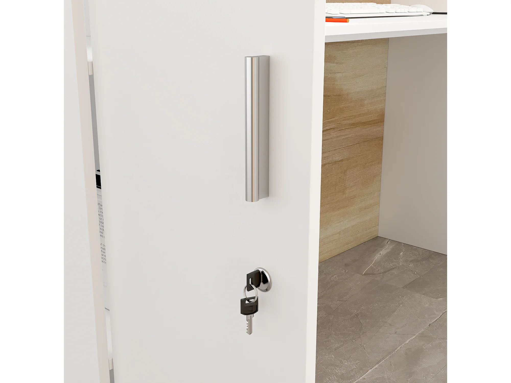 Bureau d’Accueil avec 2 Portes verrouillables, Comptoir de réception avec Compartiments, Salon et Bureau, 180x60x110cm, Naturel
