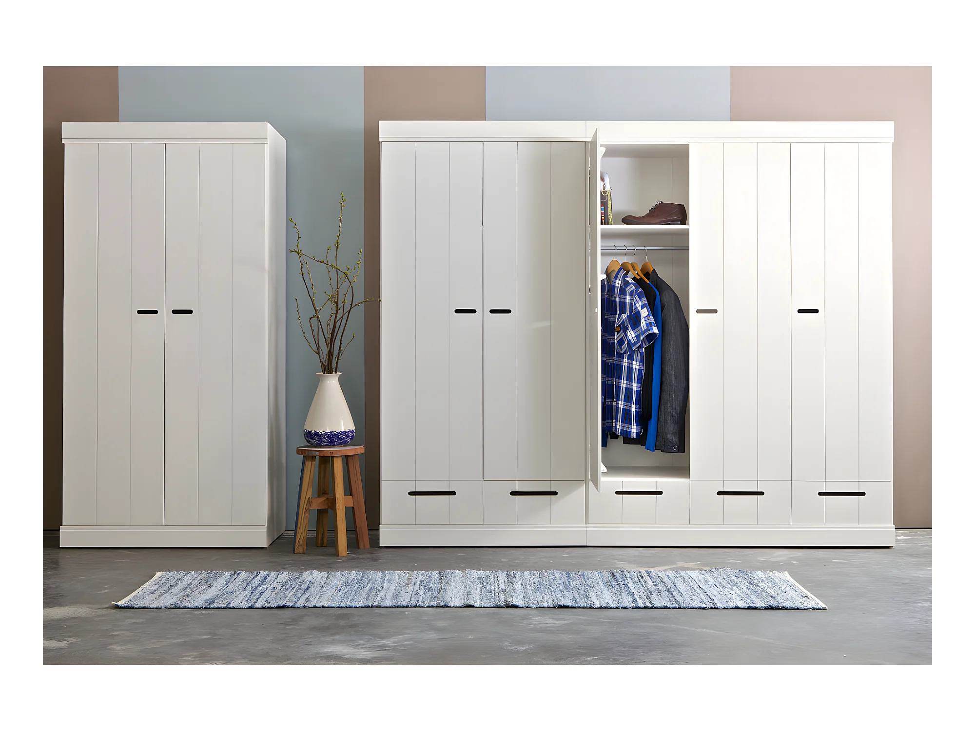 Connect - Armoire en pin 2 portes 2 tiroirs - Blanc