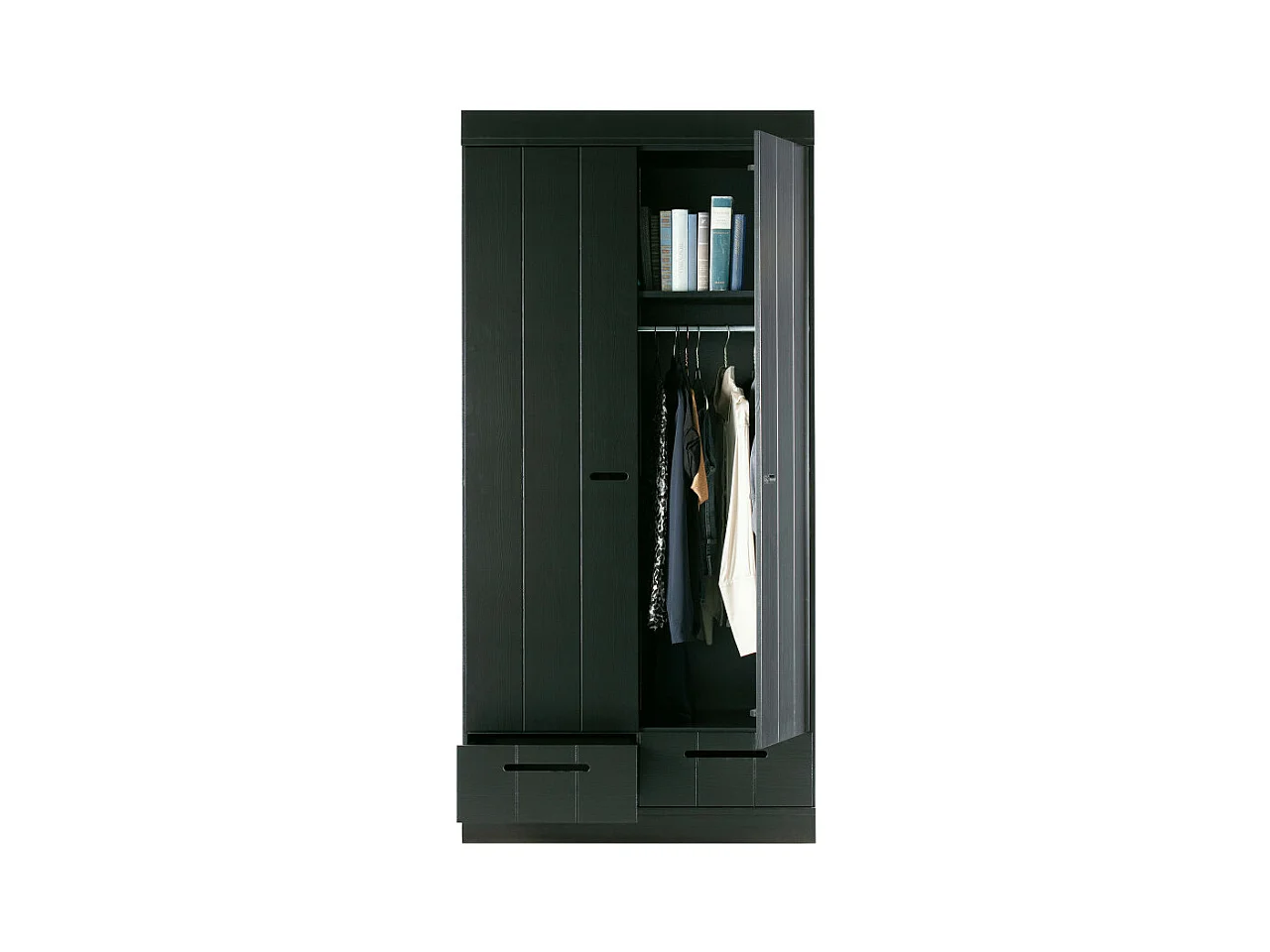 Connect - Armoire en pin 2 portes 2 tiroirs - Noir